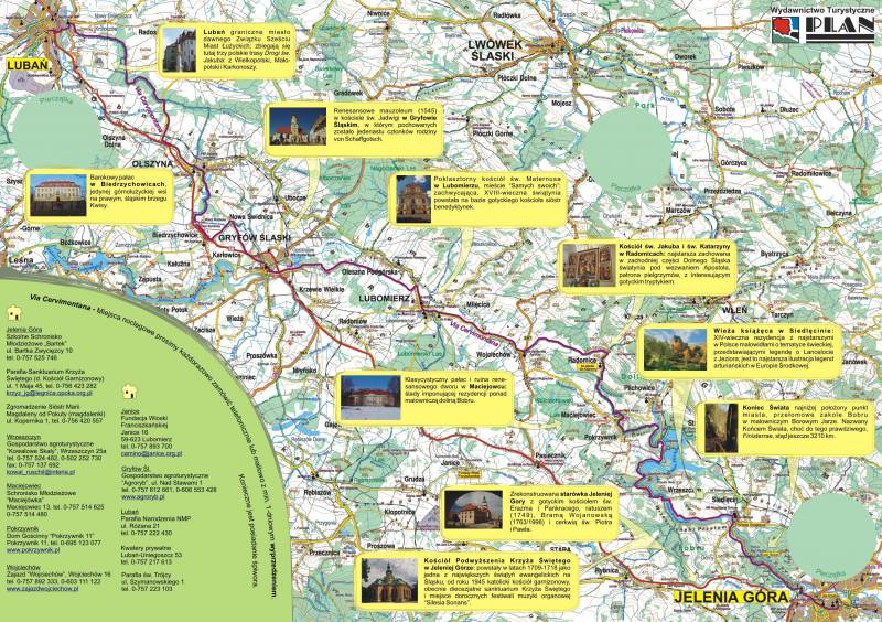 Dotychczas ukazały się dwie publikacje poświęcone dolnośląskim trasom jakubowym: „Dolnośląska Droga św. Jakuba” oraz „Via Cervimontana”. Pierwsza, autorstwa Emila Mendyka ma formę bogato ilustrowanego przewodnika. Jej mocną stroną jest solidnie przygotowany, interesujący tekst oraz liczne mapki. W jej ramach szczególnie istotną rolę odgrywa wstęp. Autor wyczerpująco i z prawdziwą pasją przedstawił w nim tajniki odrodzenia idei wędrówek do Santiago oraz wyjaśnił przesłanie całej inicjatywy. Druga z wymienionych wyżej publikacji pt. Via Cervimontana ma charakter komplementarny w stosunku do pierwszej. Pod łacińską nazwą Via Cervimontana kryje się odcinek drogi sudeckiej wiodący z Jeleniej Góry do Lubania. Warto nadmienić, że trasa pątnicza nie pokrywa się z drogą nr 30 lecz przebiega na północ od niej. Najpierw biegnie malowniczą doliną Bobru, później zaś przecina takie miejscowości jak Pokrzywnik, Radomice, Milęcice, Lubomierz, Gryfów, Biedrzychowice i Olszynę. Z myślą o miłośnikach architektury i historii autor wyróżnił na szlaku i opisał pokrótce kościoły oraz siedziby szlacheckie. Ów folder, chociaż objętościowo skromny, budzi bardzo pozytywne wrażenie. Rzeczywiście może on zachęcić do wędrówki jednym z jakubowych szlaków.