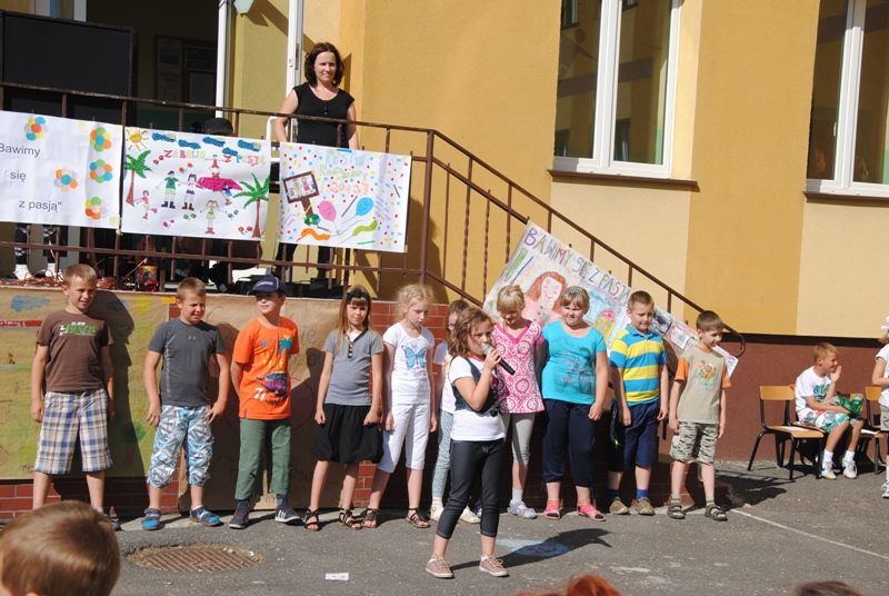 Uroczystego otwarcia festynu dokonała Pani Dyrektor Joanna Szkudlarek, która kończąc swoje przemówienie, powiedziała: Niech dzisiejszy festyn będzie również okazją do spędzenia miłego popołudnia z dziećmi, dla których tak często brakuje nam czasu. A przecież nie wolno nam zapominać, że szkoła nasza nosi imię Kawalerów Orderu Uśmiechu, dla których dobro dzieci było największą wartością, a „każde dziecko jest słońcem, które wschodzi”. Festyn rodzinnym pod hasłem „Bawimy się z pasją” uważam za otwarty i życzę przyjemnej zabawy.