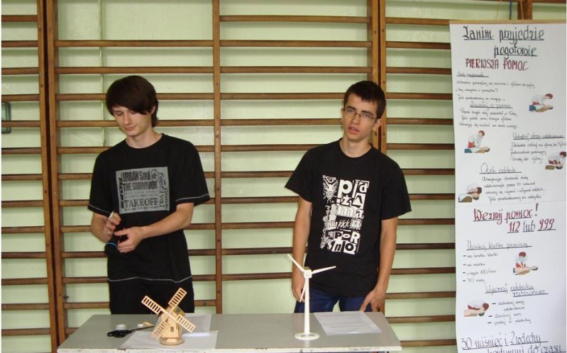 Gimnazjaliści z klas trzecich przygotowali projekty o różnej tematyce naukowej i starali się rozwiązywać problemy szukając odpowiedzi na pytania: na czym polega metoda zapłodnienia In vitro, jakie mają zastosowanie elektrownie wiatrowe, czy wartości ZHP kształtują charakter młodego człowieka, jakie jest prawdopodobieństwo trafienia szóstki w totolotka itp.? Gimnazjaliści zaprezentowali gry dydaktyczne, makiety, gazetę szkolną, prezentacje multimedialne. Wykazali się umiejętnościami udzielania pierwszej pomocy i planowania jadłospisu zdrowego żywienia z licznikiem kalorii.