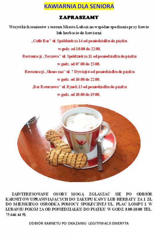 Zapraszamy - Projekt "Kawiarnia dla Seniora"