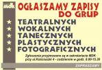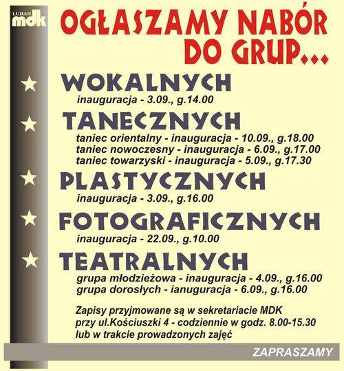 Miejski Dom Kultury w Lubaniu ogłasza zapisy do grup teatralnych, wokalnych, tanecznych, plastycznych i fotograficznych.