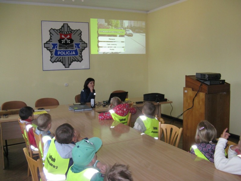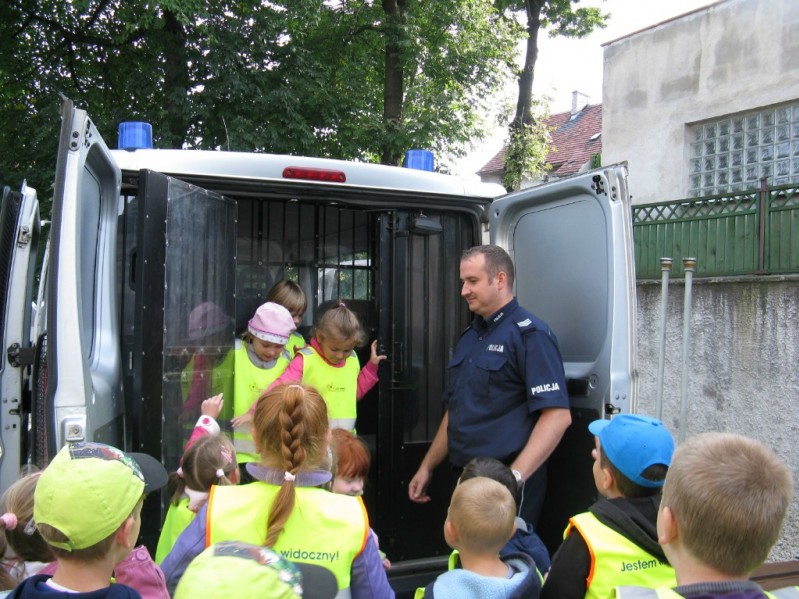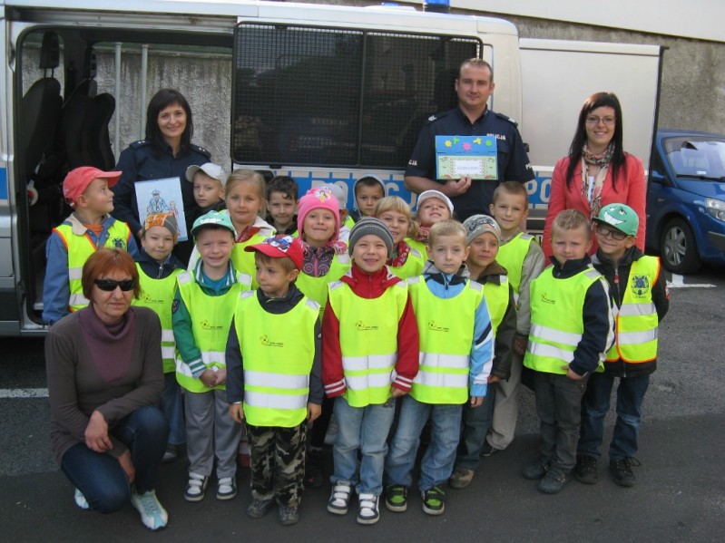 Dnia 21 września dzieci z grupy V i VI udały się wraz z wychowawcami do Komendy Powiatowej Policji. Tam przywitała ich podkom. Anna Włoszczyk i opowiedziała na czym polega praca policjantów. Celem spotkania było uświadomienie dzieciom, jak unikać zagrożeń i jak zachować się w sytuacjach niebezpiecznych, a przede wszystkim wytworzenie u dzieci przekonania, że policjantowi można ufać, że zawsze mogą na niego liczyć w trudnych dla siebie sytuacjach.