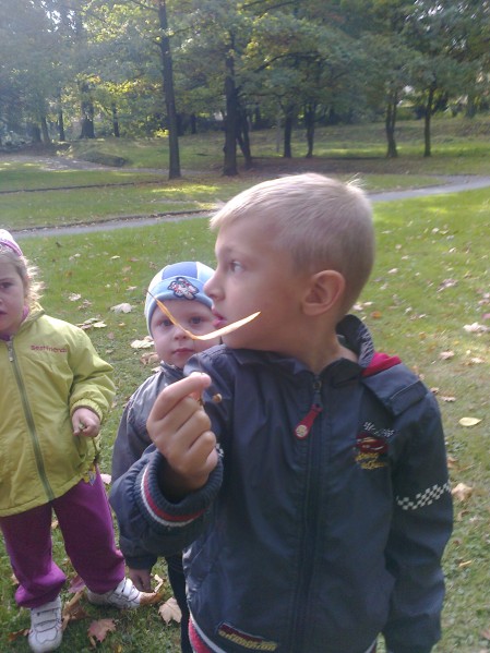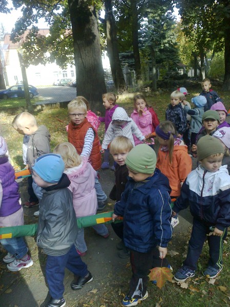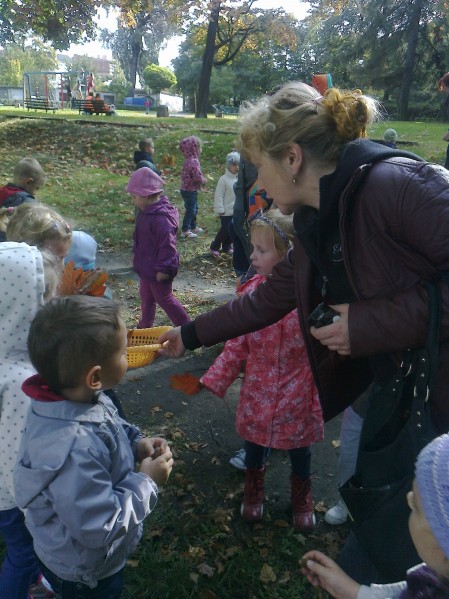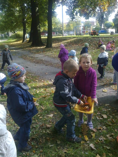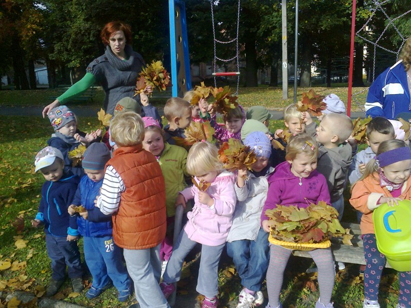 Najmłodsze przedszkolaki z grupy I i II podczas spaceru szukały jesieni, poznając przy okazji najbliższe otoczenie. Zbieranie darów jesieni sprawiło maluszkom dużo radości. Z pewnością niedługo powstaną z nich ciekawe prace plastyczne oraz przestrzenne.