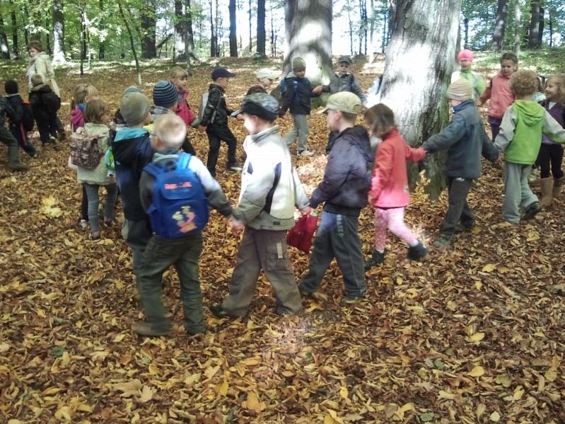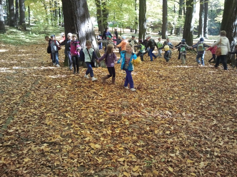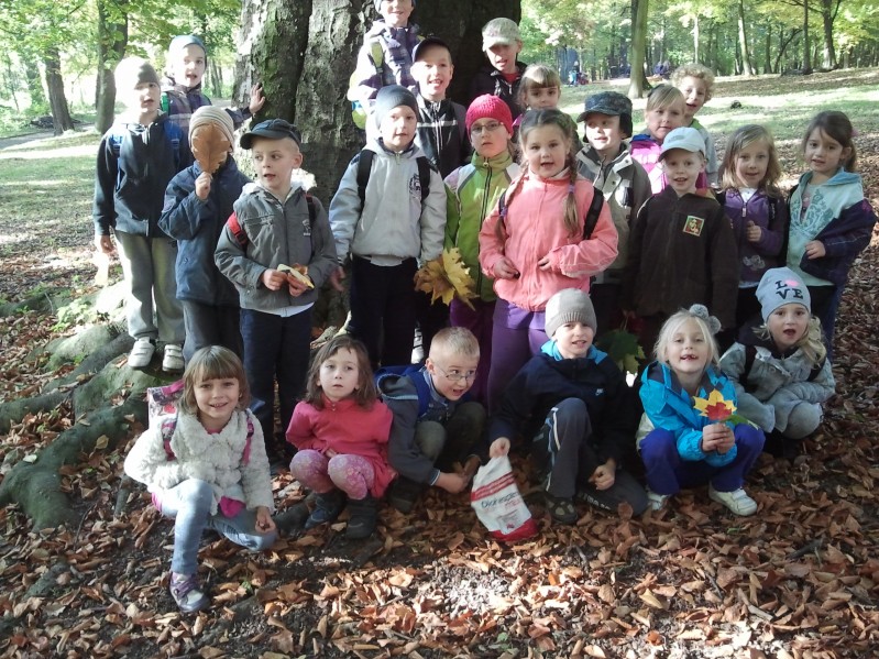 Dnia 19.10.12r. dzieci 5 i 6-letnie wybrały się na spacer do parku "Kamienna Góra" malowniczego miejsca, szczególnie o tej porze roku - jesień. Dzieci były zachwycone widokiem parku w barwach jesiennych. Podziwiały wygląd drzew (pomniki przyrody), obserwowały ptaki. Dużą frajdą dla dzieci był odpoczynek na ławeczkach w parku. Największą atrakcją były zabawy w parku.