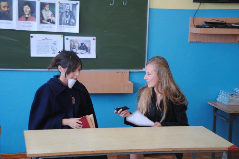 Młodzi entuzjaści historii przygotowali dla swoich koleżanek i kolegów scenki dramowe, w których wcieli się w postać reporterów oraz wybitnych osobowości z przeszłości. Dzięki temu wielu uczniów zdobyło dodatkowe informacje na temat Leonarda da Vinci, Michała Anioła, Mikołaja Kopernika, Mikołaja Reja oraz Jana Kochanowskiego.