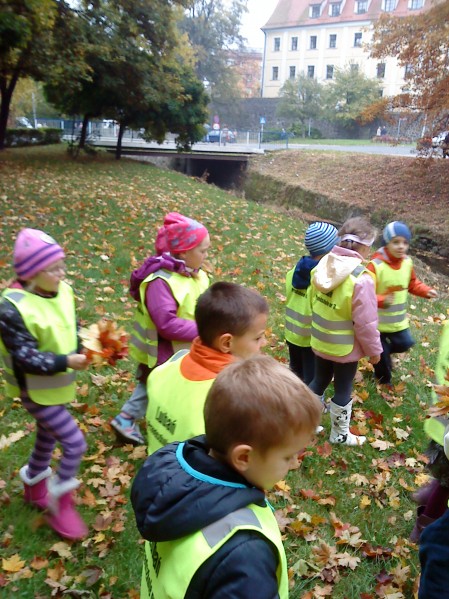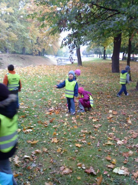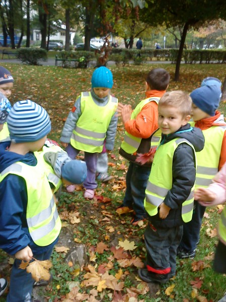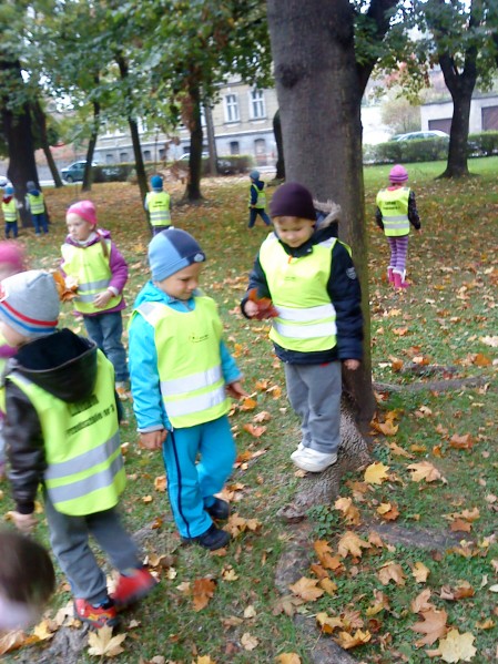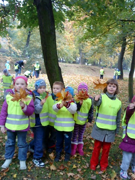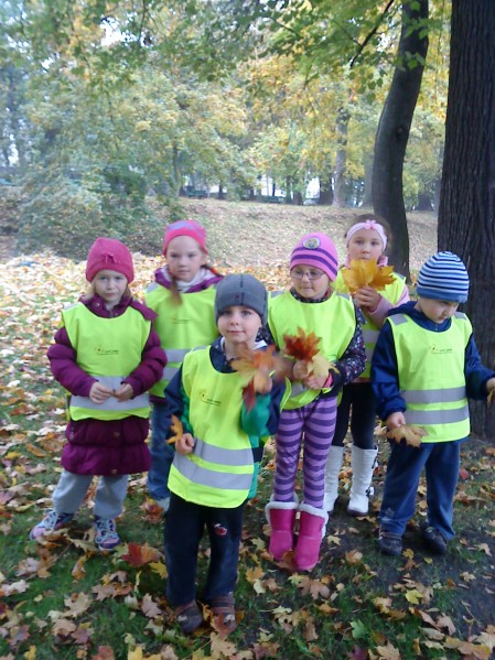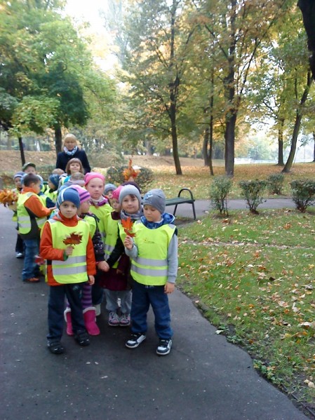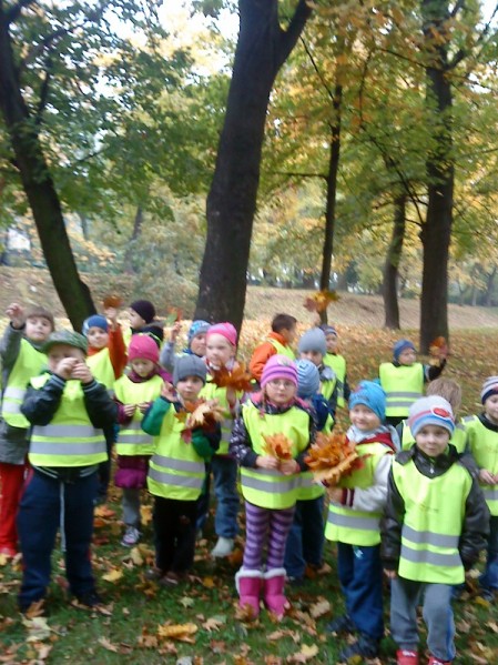 W październiku dzieci z grupy IV wybrały się do pobliskiego parku. Piękna pogoda sprzyjała spacerom i zabawie na świeżym powietrzu. Przyjemnie biegało się po dywanie usłanym z kolorowych liści. Zrobiliśmy z nich bukiety, które stały się ozdobą kącika przyrodniczego. Małym przyrodnikom udało się wytropić i obserwować ślimaka oraz wypatrzyć cudownego muchomora! Mały park- wiele radości. Z pewnością często będziemy tu wracać.