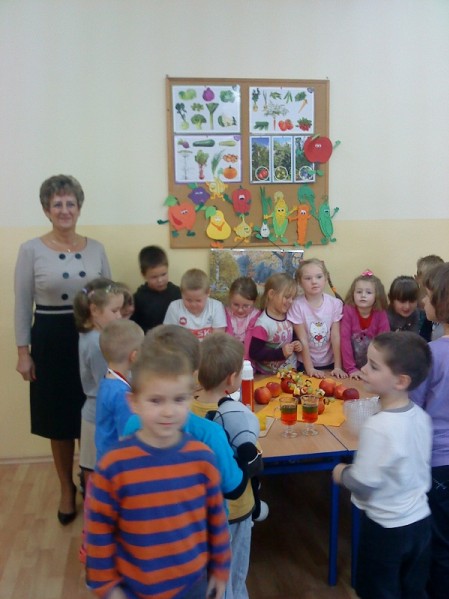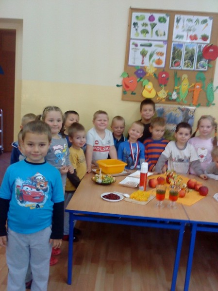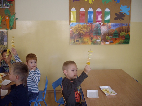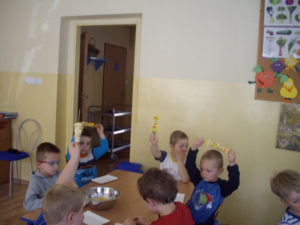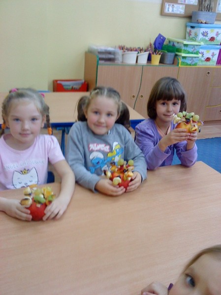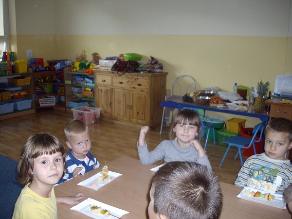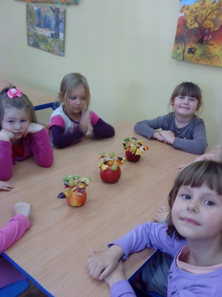 i bardzo smacznie, a nasze niejadki odkryły, że kiwi, granaty, śliweczki i brzoskwinie są jadalne i smakują, że palce lizać!       Cóż, w przedszkolu wszystko smakuje lepiej.