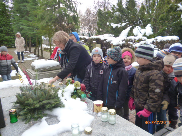 Okres przed Świętem Zmarłych, to odpowiedni moment na wspomnienie o tych, którzy odeszli od nas, czas na rozmowę dotyczącą szacunku dla zmarłych i o odpowiednim zachowaniu się w takim miejscu, jakim jest cmentarz. Dzieci tego dnia zapaliły znicze oraz złożyły wieniec na grobie Żołnierzy Radzieckich.