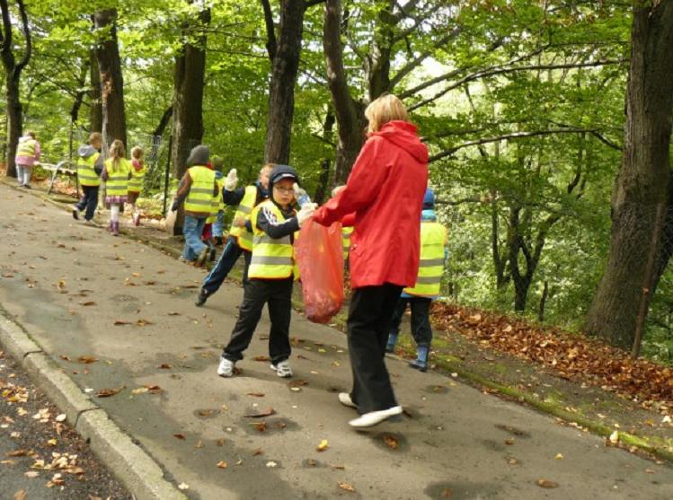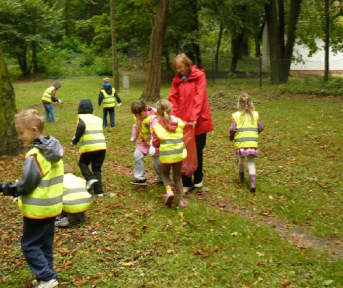 Akcję poprzedziły oczywiście pogadanki na temat zanieczyszczeń środowiska i szkód jakie ze sobą niosą. Sprzątaliśmy teren wokół przedszkola, a następnie udaliśmy się do pobliskiego Parku na Kamiennej Górze i mimo, że pogoda troszkę postraszyła nas deszczem, dzieci z wielką ochotą udały się , by wziąć udział w tak ważnej akcji "Bo już mały przedszkolak dobrze wie, że góra śmieci - ziemię szpeci "