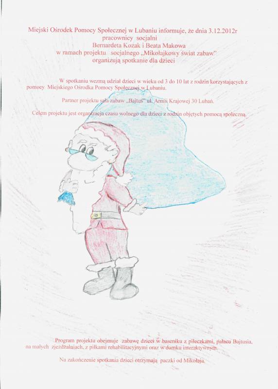 Ogłoszenie - Projekt socjalny "Mikołajkowy świat zabaw"