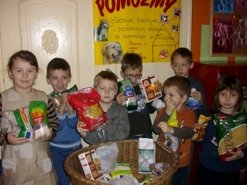 Światowy Dzień Kundelka zmobilizował przedszkolaki i personel z naszego przedszkola do wzięcia udziału w akcji "Pomagamy zwierzętom ze schroniska przetrwać zimę" . Dzieci wspólnie z rodzicami przez cały miesiąc listopad przynosili do przedszkola karmę dla piesków. Akcja skierowana była do Schroniska dla małych zwierząt w Dłużynie Górnej . Serdecznie dziękujemy wszystkim rodzicom i dzieciom za udział w tak szlachetnej akcji.