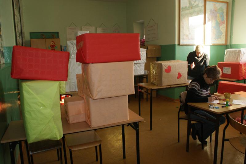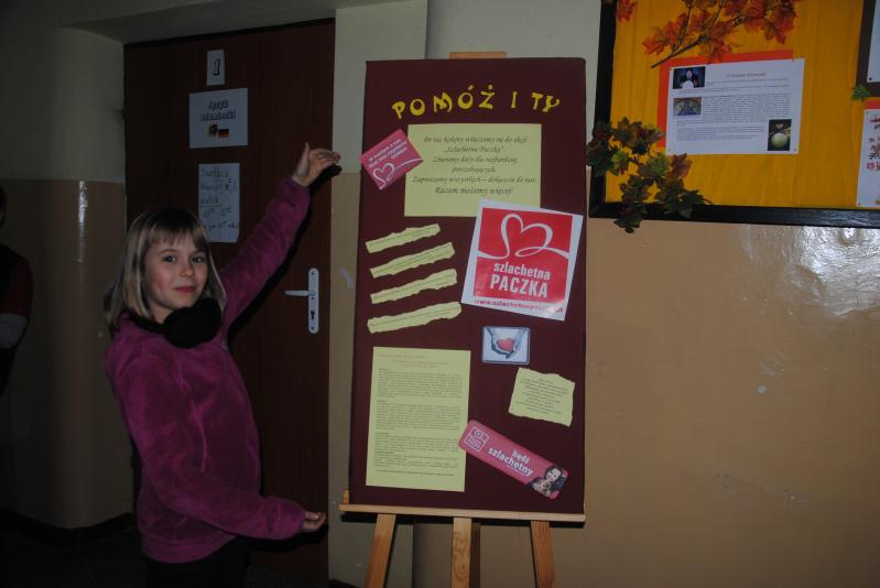 W tym roku szkolnym po raz 3 wzięliśmy udział w Szlachetnej Paczce. Podobnie jak w latach ubiegłych hojność ludzi  przeszła nasze najśmielsze oczekiwania. Po wybraniu rodzin rozpropagowaliśmy akcję w środowisku szkolnym. W szkole i na stronie internetowej pojawiły się informacje na temat najpilniejszych potrzeb rodzin. Nieszczęśliwy los dzieci poruszył serca wszystkich. Nasi uczniowie codziennie przynosili dary. Często towarzyszyli im dorośli, bo biurko czy odkurzacz wymagały pomocy w dostarczeniu ich do szkoły. Nie zabrakło odzieży, zabawek, artykułów szkolnych i spożywczych oraz pieniędzy na zakup obuwia zimowego.