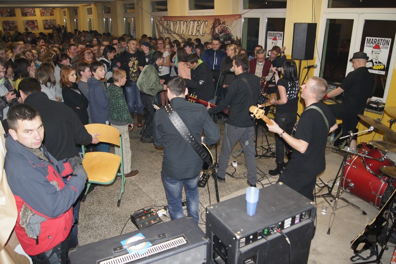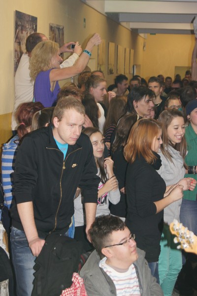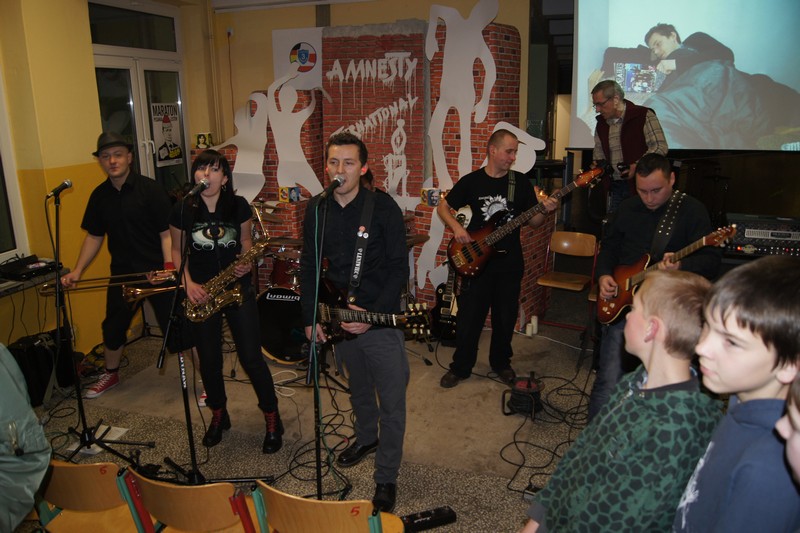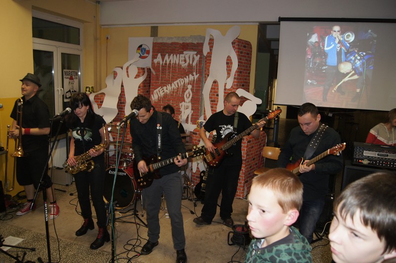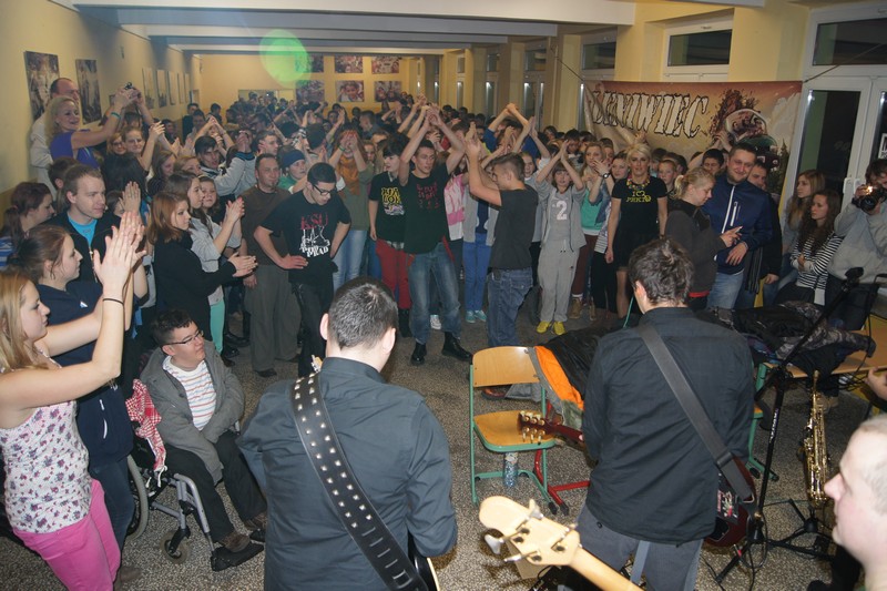 Wczoraj w Lubaniu było wszystko: patrol ZOMO, maraton pisania listów w obronie więźniów politycznych, miniskansen PRL, koksowniki i inne oznaki Stanu Wojennego, dyrektorka szkoły w pogo… Jeśli do tego dodam, że koncert miał być na dworze (przy – 20) i w ostatniej chwili cały sprzęt przenosiliśmy na szkolny korytarz, to już wiecie, że sporo się tam działo. Dzięki za koncert !”.