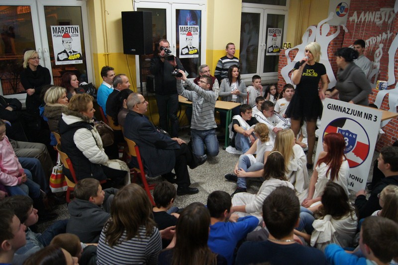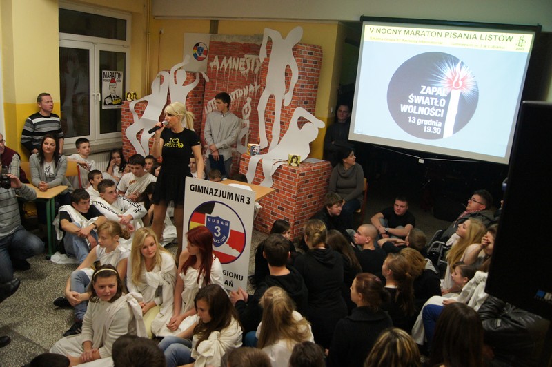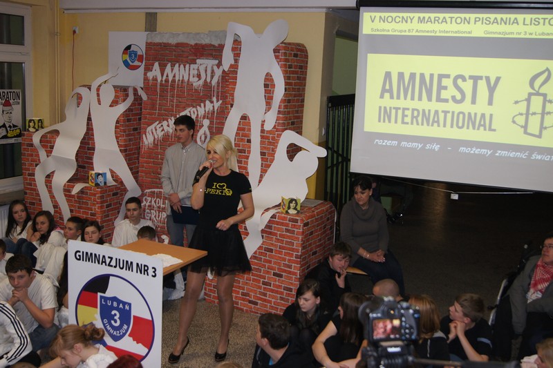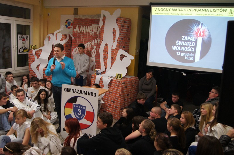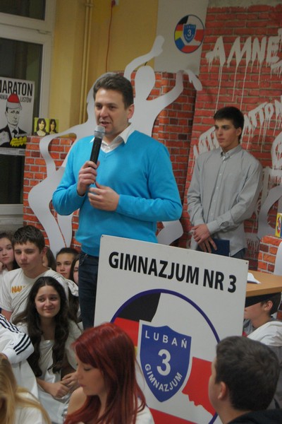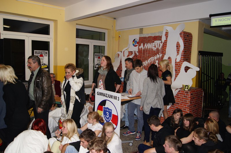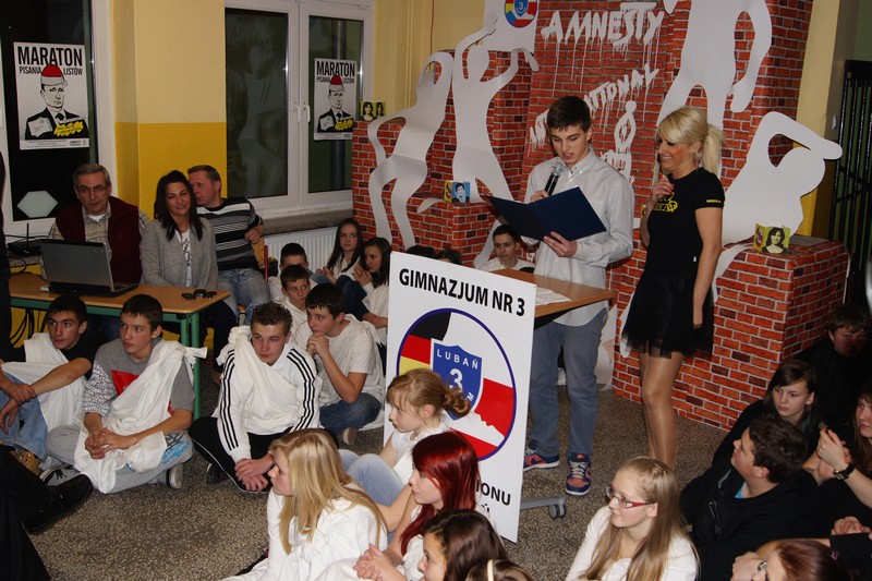 O godzinie 16.00 przed budynkiem Gimnazjum nr 3 rozpoczął się koncert charytatywny na rzecz Pawła Majerczyka - ucznia ZSP im. Adama Mickiewicza w Lubaniu. Publiczność bawiły zespoły „Pinokio” i   „Syndrom”. Część oficjalna imprezy rozpoczęła się o godzinie 19.00. Swoją obecnością zaszczycili przedstawiciele lokalnych władz oraz wszyscy ludzie dobrego serca, którym nie jest obojętny los pokrzywdzonych i idea przestrzegania praw człowieka. Bohaterami tegorocznego Maratonu byli: Aleś Bielacki, zespół Pussy Riot, Azzis Hilal Ahmad  Suleiman oraz Narges Mohammadi. W ich obronie napisano 1167 listów.