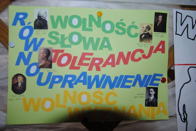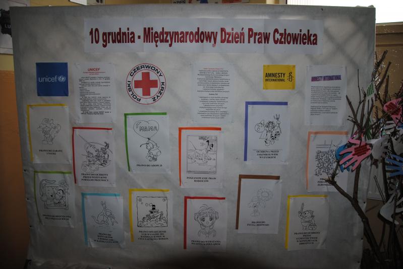 Uczestnicy koła historyczno-europejskiego oraz polonistycznego podczas zajęć poznali instytucje chroniące prawa człowieka, dyskutowali o potrzebie ich przestrzegania oraz wyjaśniali słowa „wolność jednego człowieka kończy się tam, gdzie zaczyna się wolność drugiego człowieka”. Wykonali również dłonie, na których zapisane zostały prawa człowieka ze szczególnym naciskiem na prawa dzieci.