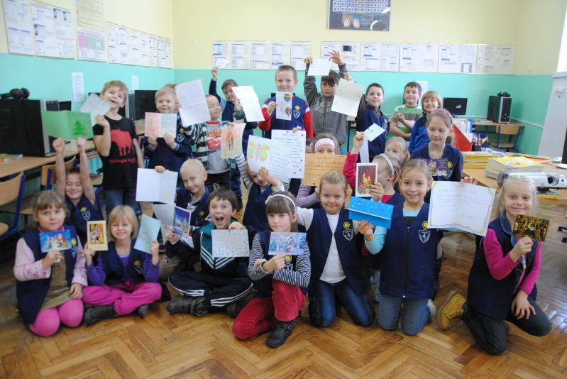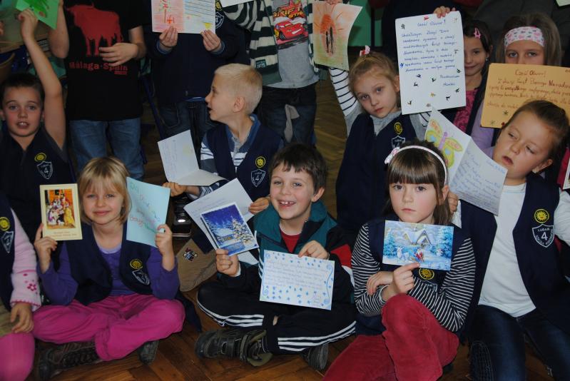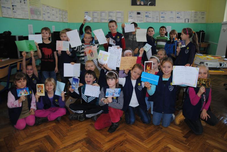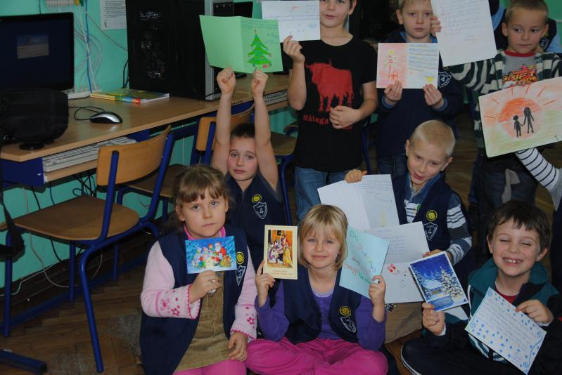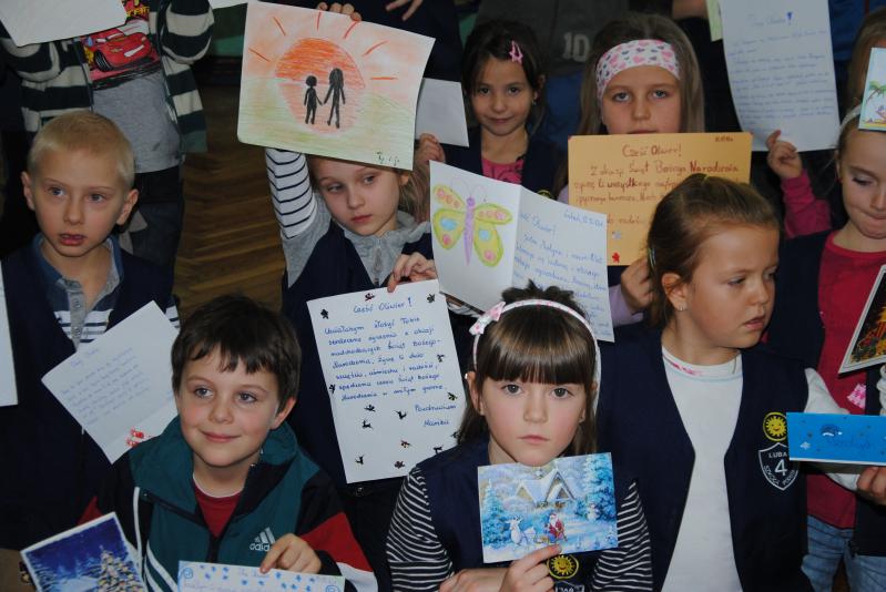 W tym roku przyłączyliśmy się do niej również my. Postanowiliśmy napisać do dwóch ciężko chorych chłopców – Huberta i Oliwiera. Panie: Jolanta Klatka, Beata Kwiecińska i Agnieszka Tołwińska przedstawiły cel akcji nauczycielom, a chętni uczniowie tworzyli kartki i pisali listy. Łącznie zebraliśmy około 100 listów.