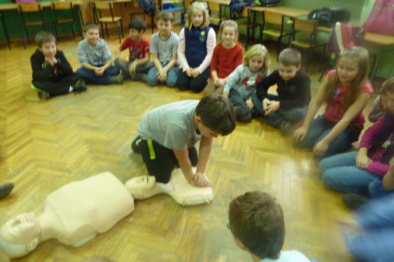 Uczestniczyli  w zajęciach warsztatowych podczas, których uczyli się zasad udzielania pierwszej pomocy: od prawidłowego wezwania pomocy przez telefon, po najprostsze czynności przy osobie poszkodowanej. Poznali  zasady zachowania się w różnych sytuacjach zagrożenia oraz zasady udzielania pierwszej pomocy przedmedycznej.