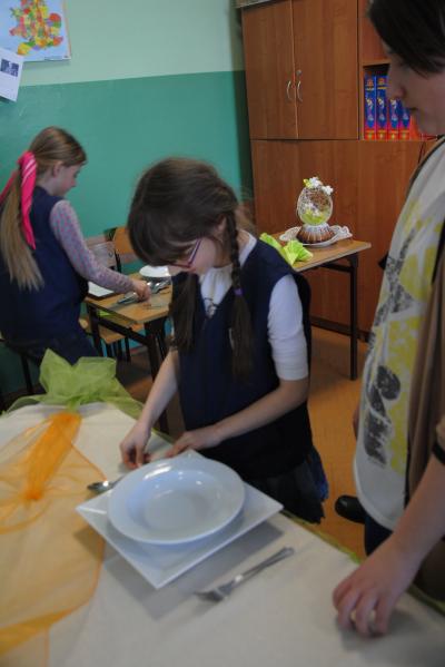 Zaczęliśmy od powitania naszych gości specjalnych  – pani Anny Konarskiej oraz pani Anny Truby, które przyjechały do nas z restauracji hotelu Leliwa w Leśnej, aby podzielić się wiedzą z zakresu dekoracji i nakrycia stołu, a także tworzenia pięknych i ozdobnych jajek nadziewanych przeróżnymi farszami oraz wiosennych, kolorowych i zdrowych kanapek. Pani Anna Konarska zajmuje się kierowaniem kuchnią i restauracją hotelu Leliwa, a więc  czerpaliśmy wiedzę z doskonałego źródła, jakim jest jej wieloletnie doświadczenie.