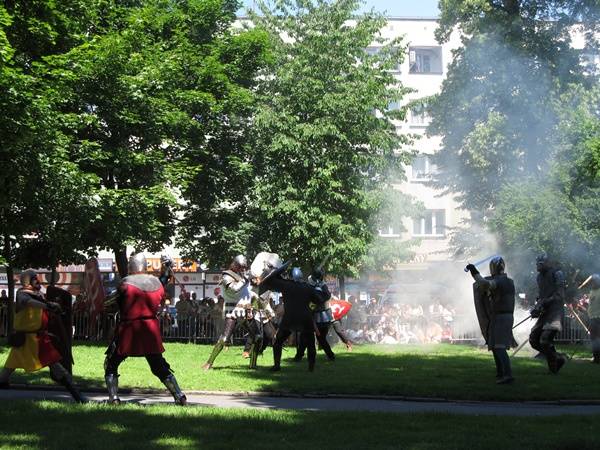 Kolejnym malowniczym punktem Dni Historii będzie sobotni przemarsz historycznej straży miejskiej w strojach z epoki o godz. 19.00. A oto zdjęcie z ubiegłorocznej inscenizacji historycznej – zdobywanie Wieży Brackiej.