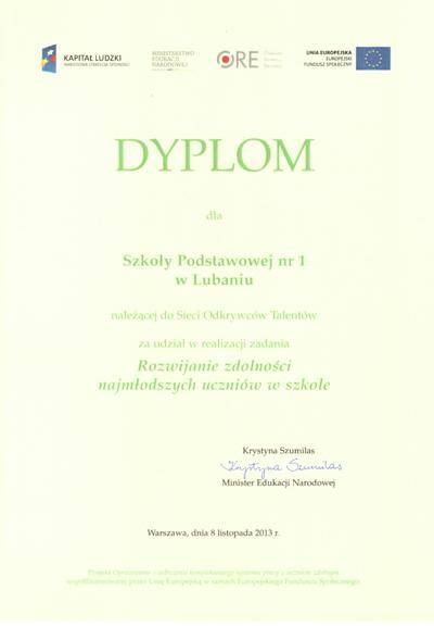 Na uwagę zasługuje również fakt, iż Jedynka jako jedyna szkoła w powiecie lubańskim nosi zaszczytne miano „Szkoły Odkrywców Talentów”.