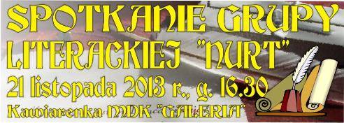 Wszystkich miłośników literatury zapraszamy na kolejne spotkanie Grupy Literackiej NURT. Już w czwartek (21 listopada) o godz. 16.30 w Kawaiarence MDK.