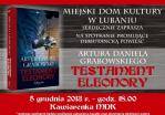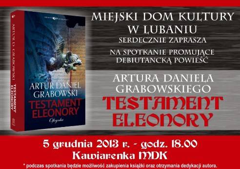 Miejski Dom Kultury serdecznie zaprasza na spotkanie promujące debiutancką powieść dziennikarza Ziemi Lubańskiej Artura Daniela Grabowskiego. Będzie to świetna okazja nie tylko do nabycia książki, ale także poznania inspiracji i kulis powstawania Testamentu Eleonory. Do zobaczenia w czwartek 5 grudnia o godz. 18.00.