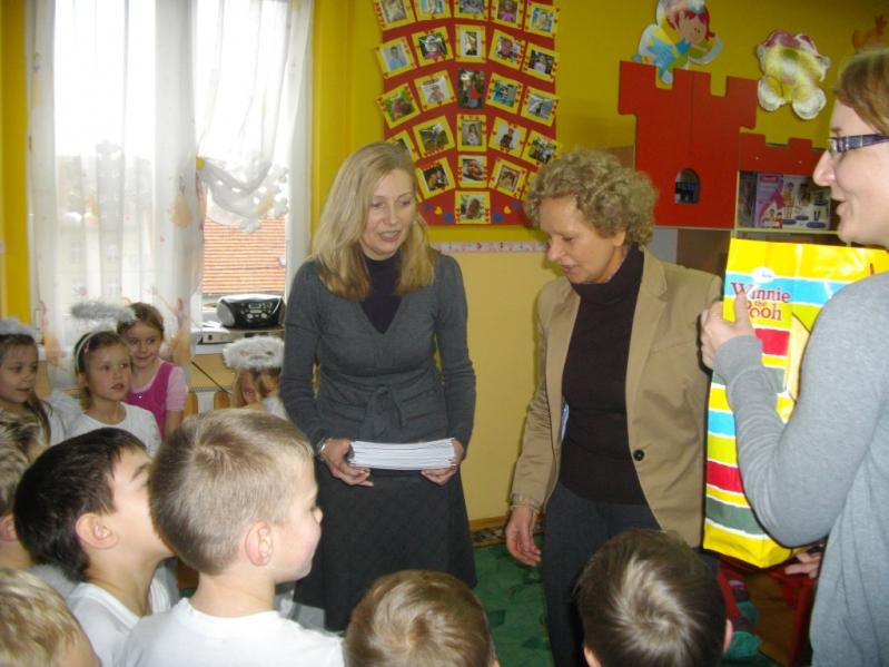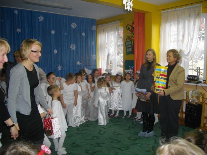 W piątek 5 latki z Przedszkola Niepublicznego Nr 1 gościły u siebie z wizytą pracownice Miejskiej i Powiatowej Biblioteki Publicznej im. Marii Konopnickiej w Lubaniu wraz z p.dyrektor Małgorzatą Piotrowską . Wcześniej dzieci kilkakrotnie odwiedzały bibliotekę, a teraz miały okazję odwdzięczyć się za bardzo serdeczne przyjęcia. Miło nam było również gościć nasze starsze koleżanki i kolegów z kl. I SP Nr 1 w Lubaniu wraz z wychowawczynią p. Bożeną Kołodziejczak. Mamy nadzieję, że współpraca również zaowocuje wieloma sympatycznymi spotkaniami. Dzieci utrzymały gości w świątecznym nastroju zapraszając do wspólnego kolędowania podczas "Jasełek".