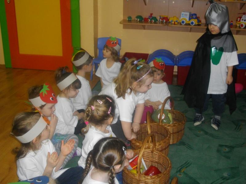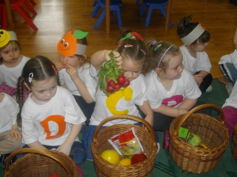 pomidorach, ziemniakach, mleku; witamina C ukryła się w cytrynie, malinach, papryce; witamina D w żółtku, wątróbce, śmietanie, maśle. Rycerz Witaminek przez 7 dni dawał księżniczce do jedzenia te wszystkie rzeczy, w których były witaminy. Gdy księżniczka wyzdrowiała nigdy już nie jadła samych słodyczy.