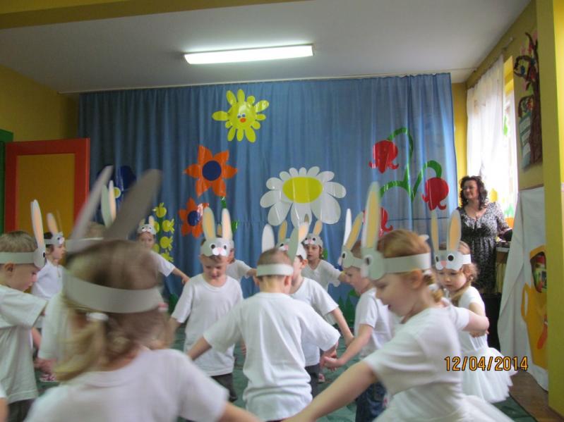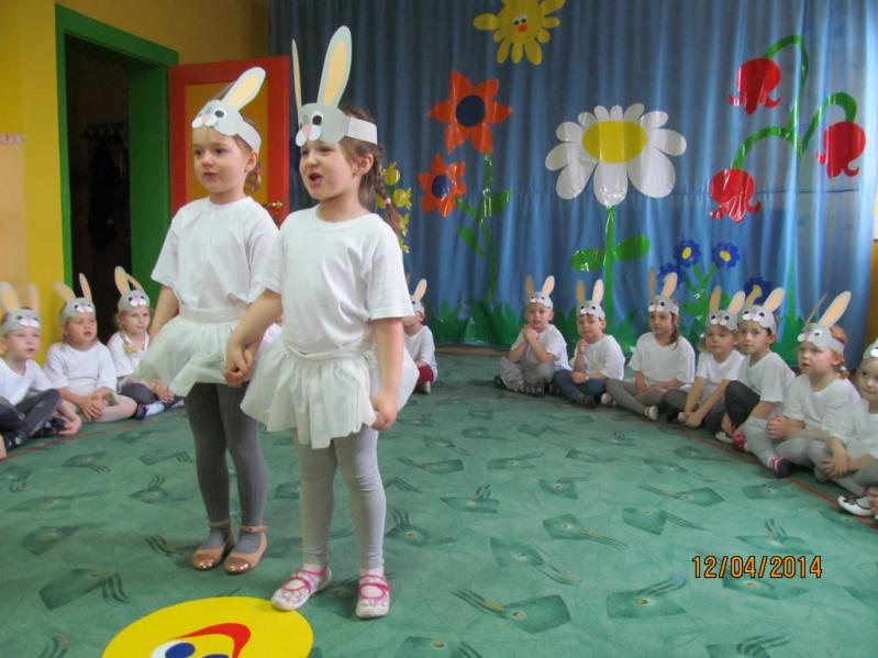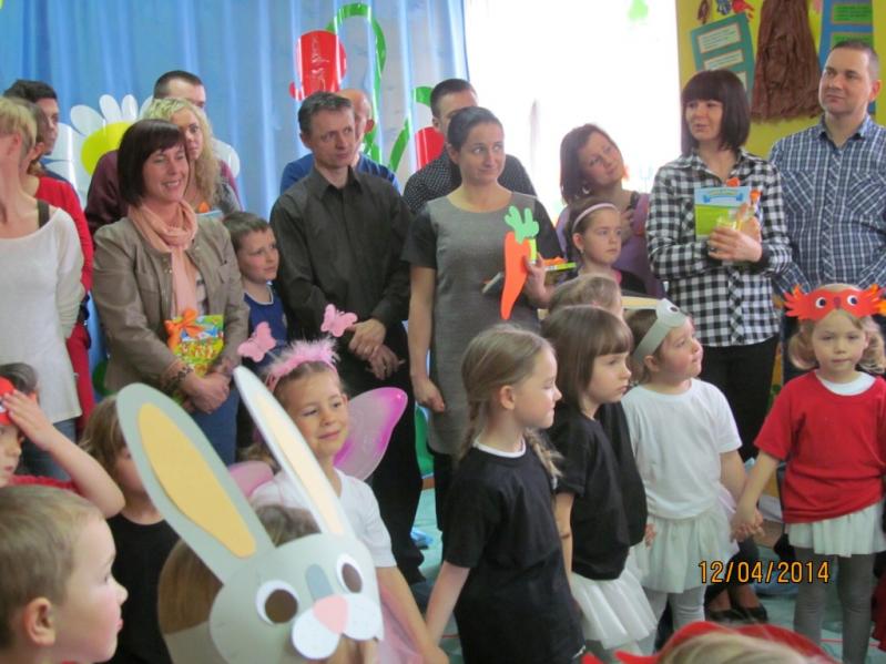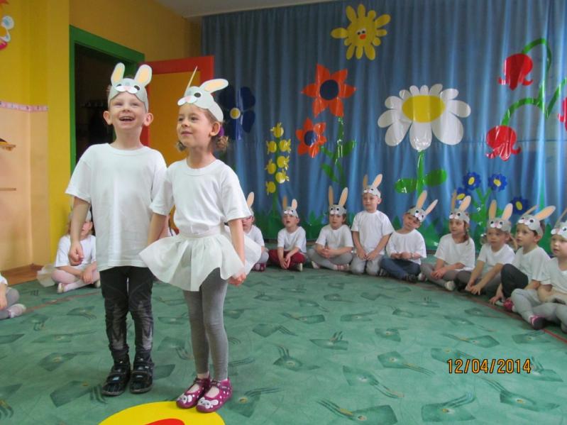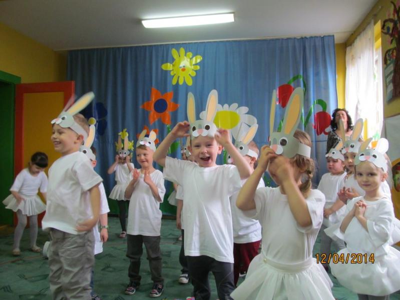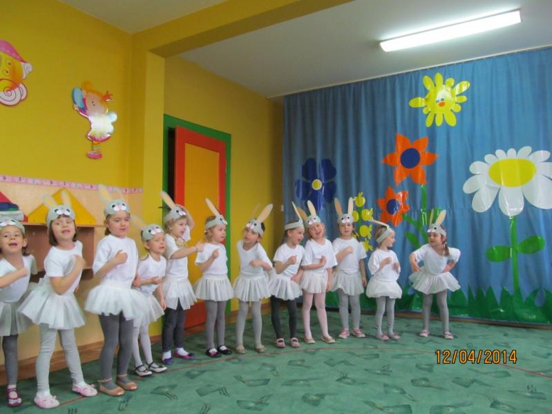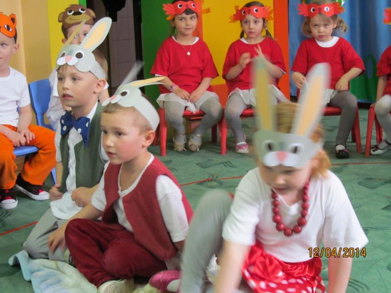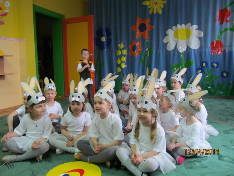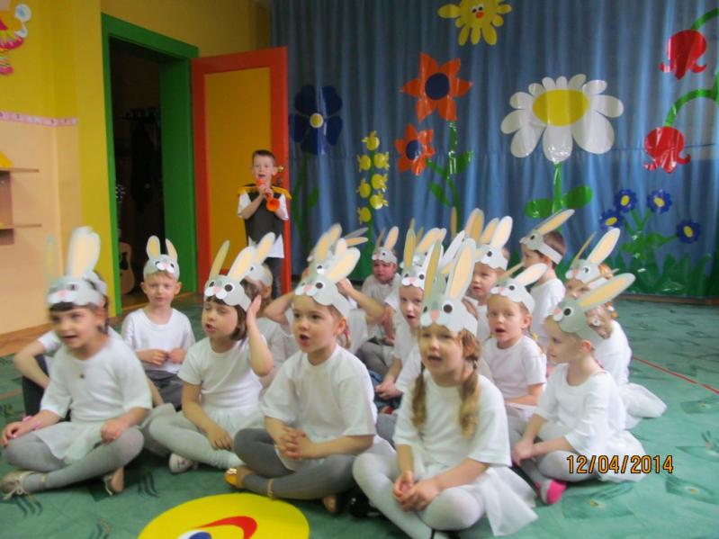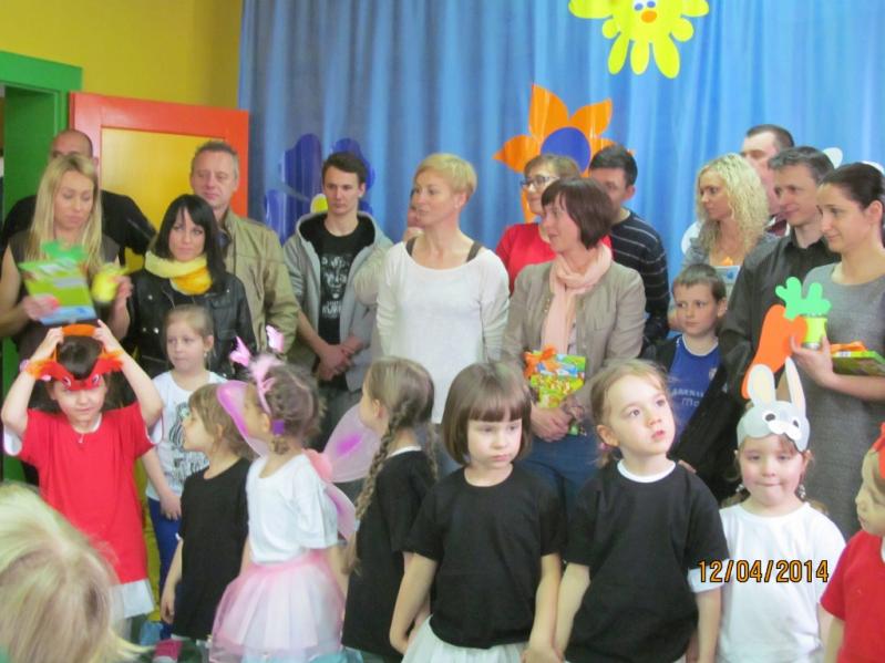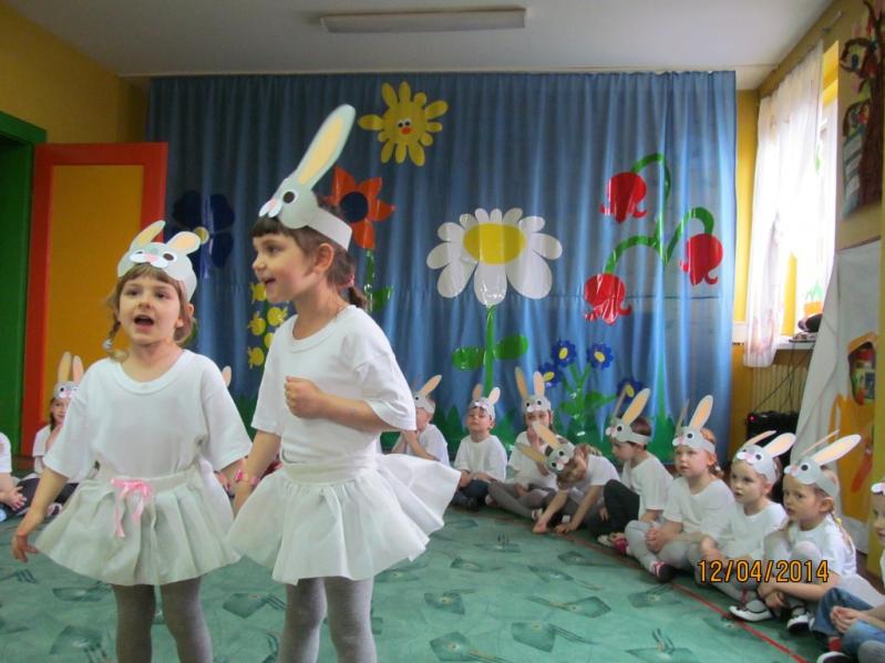 KOLEJNE CUDOWNE SOBOTNIE PRZEDPOŁUDNIE SPĘDZONE W PRZEDSZKOLU. TYM RAZEM 4 LATKI Z PANIĄ DOROTKA I PANIĄ MARYSIĄ WPROWADZIŁY NAS W BARDZO RADOSNY I ŚWIĄTECZNY NASTRÓJ. PRZEDSZKOLE OPANOWANE ZOSTAŁO PRZEZ LICZNA ZAJĄCZKOWA RODZINĘ. MALI ARTYŚCI PIĘKNIE ZAPREZENTOWALI SIĘ W PRZYGOTOWANYM PRZEDSTAWIENIU. W PODZIĘKOWANIU DZIECIOM, WYSTĄPILI RÓWNIEŻ RODZICE.