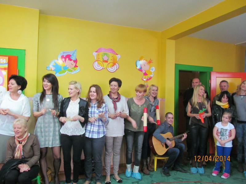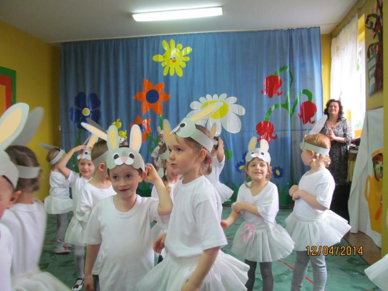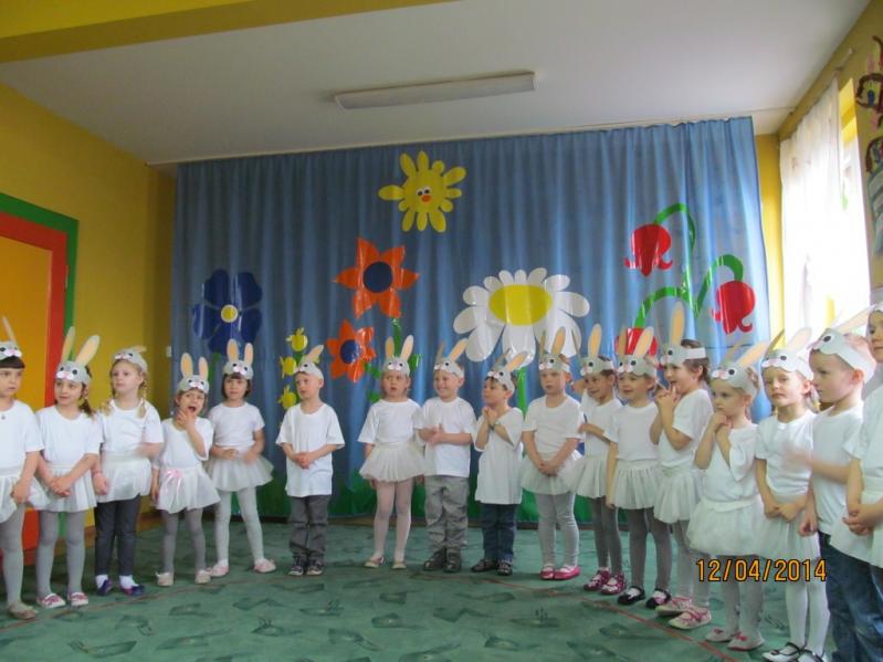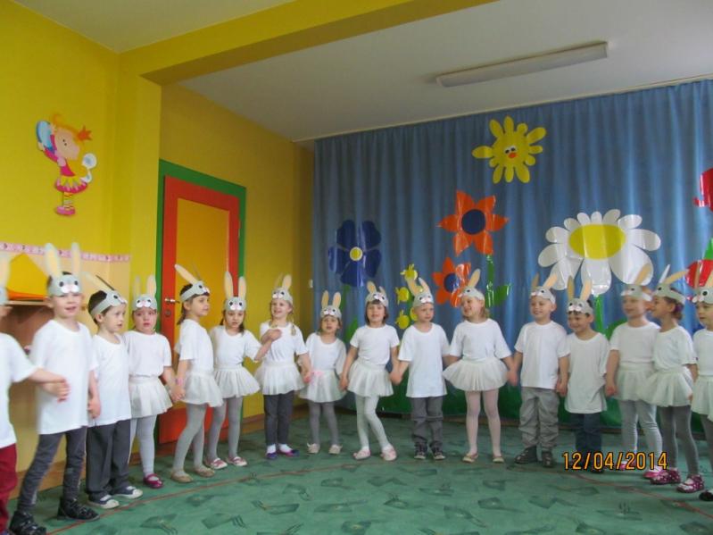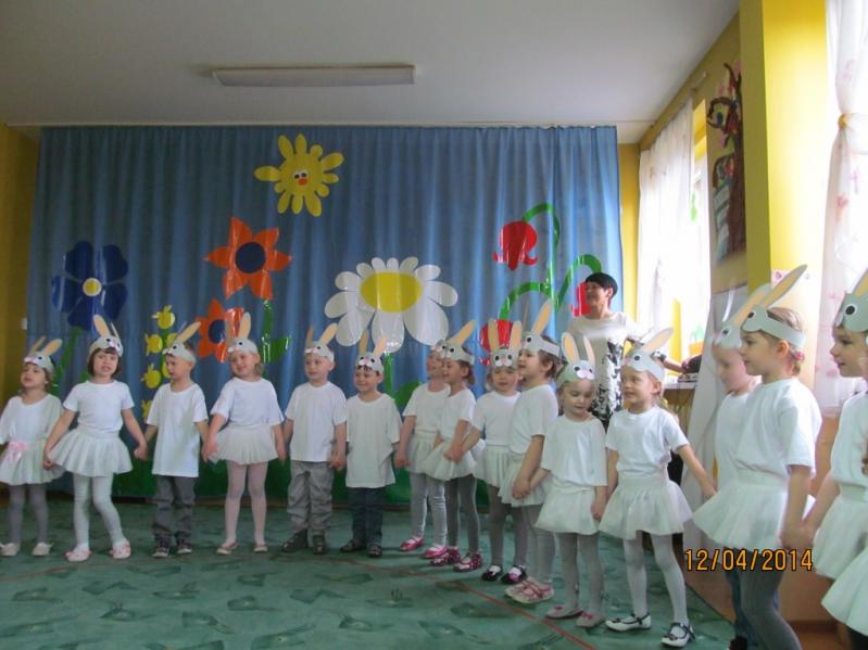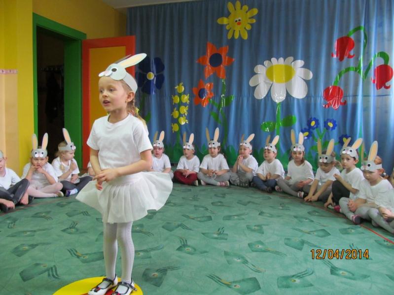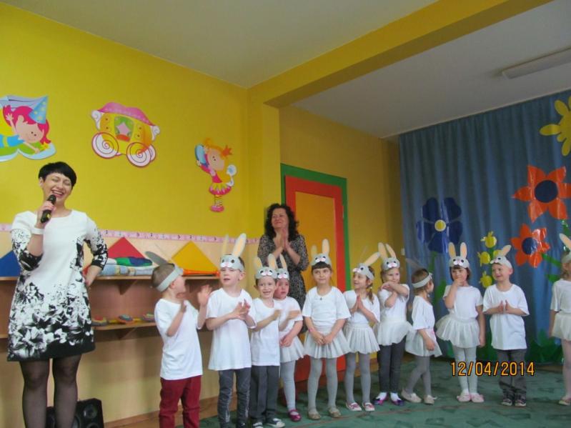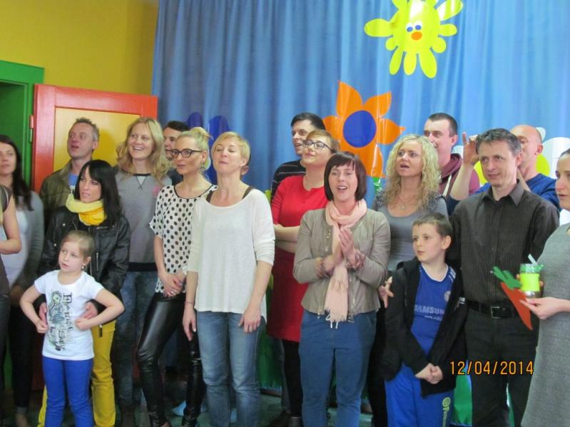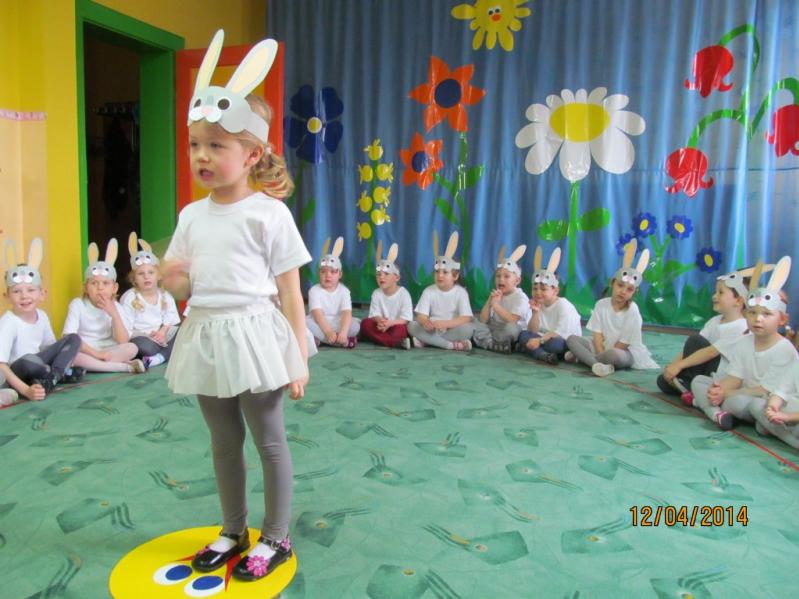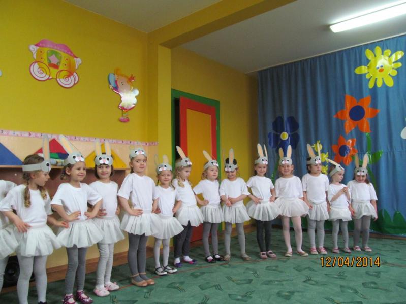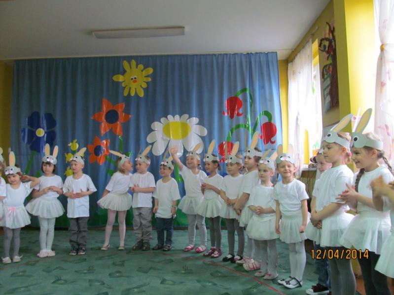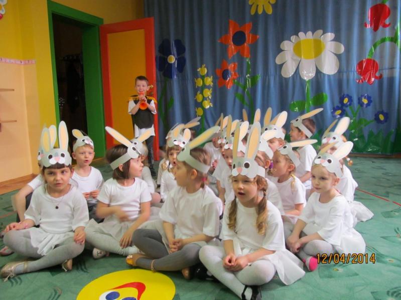 KOLEJNE CUDOWNE SOBOTNIE PRZEDPOŁUDNIE SPĘDZONE W PRZEDSZKOLU. TYM RAZEM 4 LATKI Z PANIĄ DOROTKA I PANIĄ MARYSIĄ WPROWADZIŁY NAS W BARDZO RADOSNY I ŚWIĄTECZNY NASTRÓJ. PRZEDSZKOLE OPANOWANE ZOSTAŁO PRZEZ LICZNA ZAJĄCZKOWA RODZINĘ. MALI ARTYŚCI PIĘKNIE ZAPREZENTOWALI SIĘ W PRZYGOTOWANYM PRZEDSTAWIENIU. W PODZIĘKOWANIU DZIECIOM, WYSTĄPILI RÓWNIEŻ RODZICE.