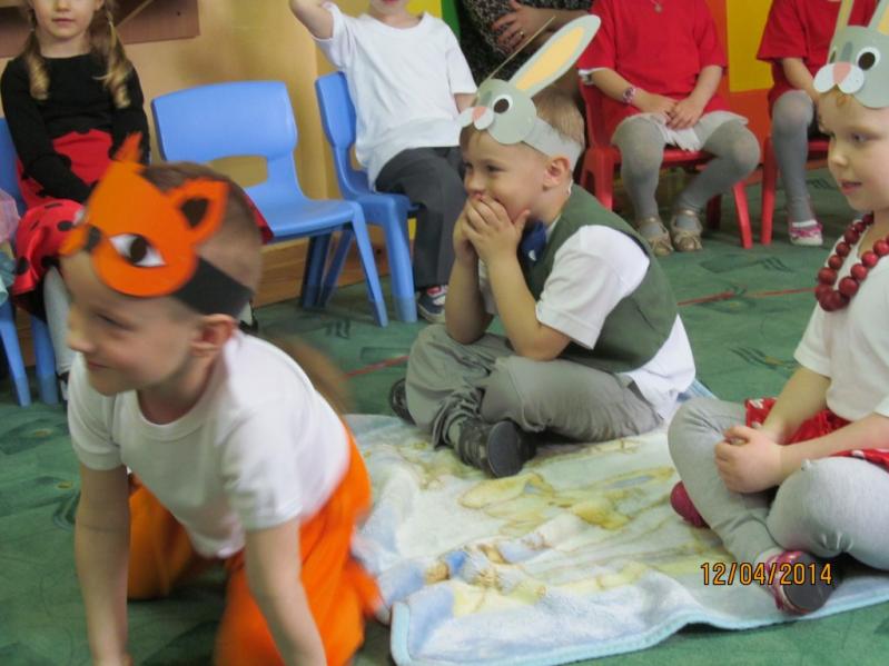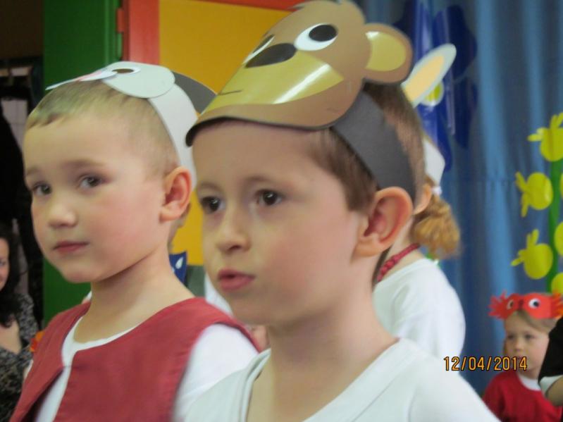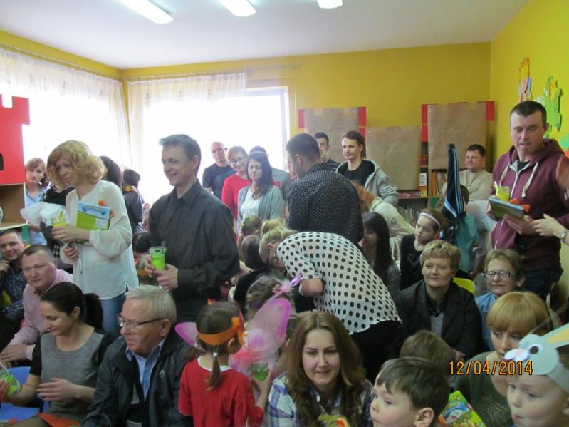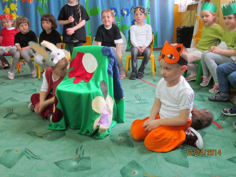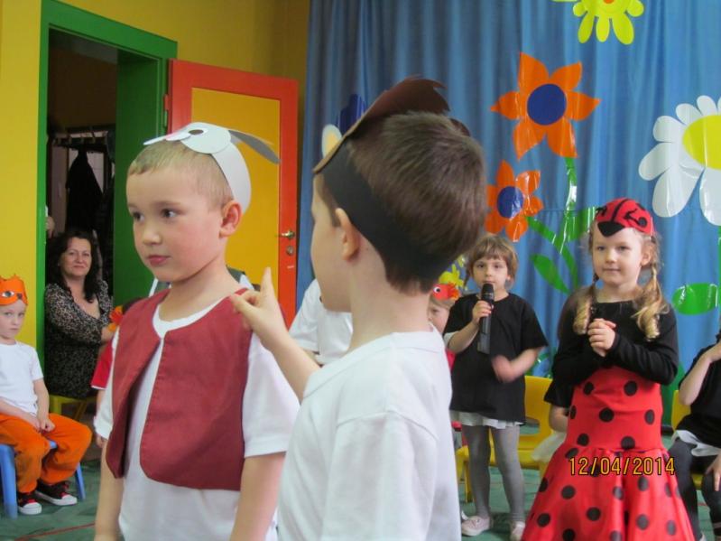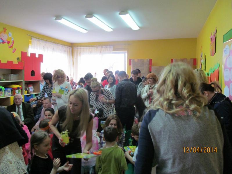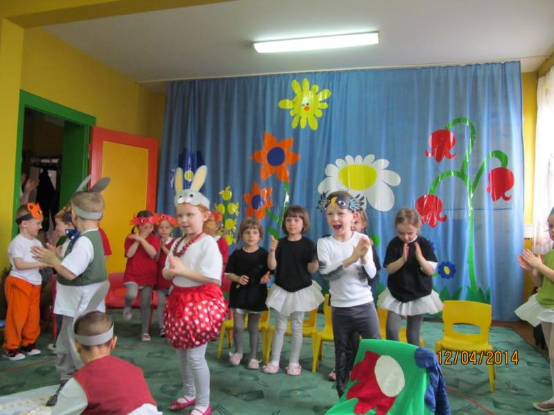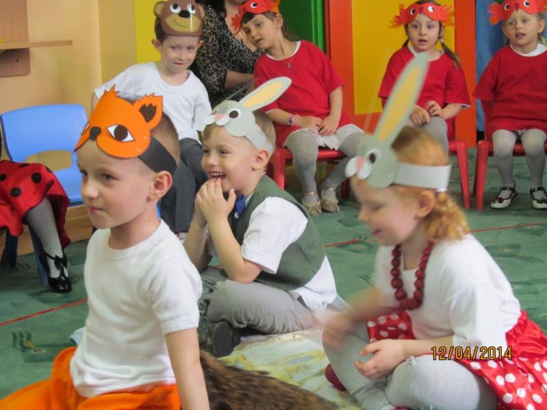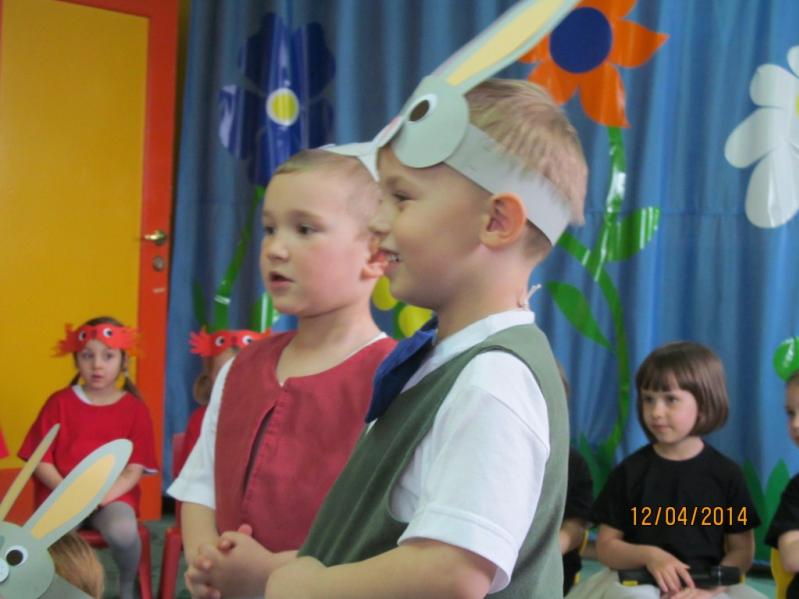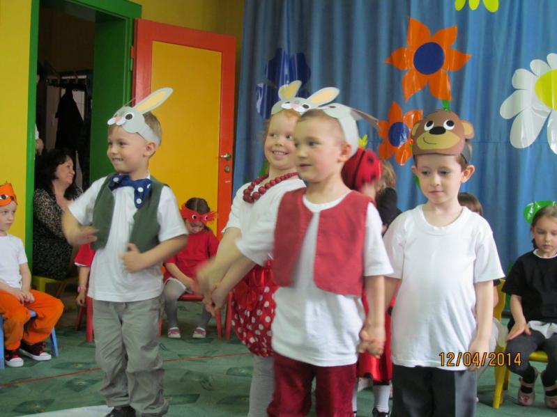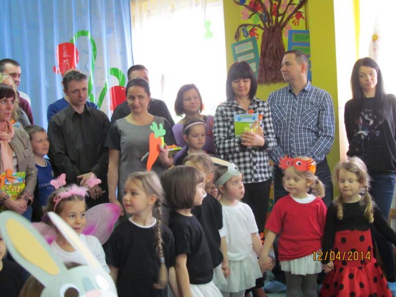 KOLEJNE CUDOWNE SOBOTNIE PRZEDPOŁUDNIE SPĘDZONE W PRZEDSZKOLU. TYM RAZEM 4 LATKI Z PANIĄ DOROTKA I PANIĄ MARYSIĄ WPROWADZIŁY NAS W BARDZO RADOSNY I ŚWIĄTECZNY NASTRÓJ. PRZEDSZKOLE OPANOWANE ZOSTAŁO PRZEZ LICZNA ZAJĄCZKOWA RODZINĘ. MALI ARTYŚCI PIĘKNIE ZAPREZENTOWALI SIĘ W PRZYGOTOWANYM PRZEDSTAWIENIU. W PODZIĘKOWANIU DZIECIOM, WYSTĄPILI RÓWNIEŻ RODZICE.
