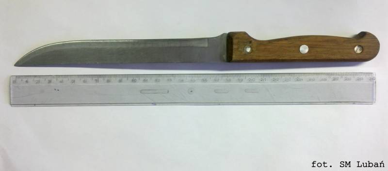 Na widok przybyłych strażników, mężczyzna ten natychmiast wyjął z pod swojej kurtki 18 centymetrowy nóż kuchenny skierowany ostrzem w stronę strażników, po czym natychmiast w popłochu go odrzucił. Podczas rozmowy z funkcjonariuszami 23 latek zarzekał się, że niebezpieczny przedmiot nie należy do niego i dlatego go wyrzucił. Nóż został zabezpieczony, aby nie wpadł w niepowołane ręce.