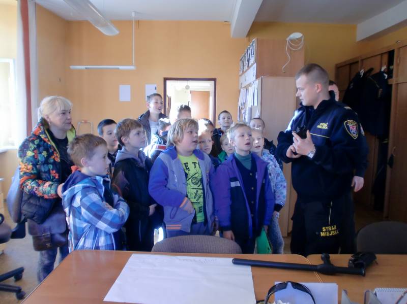 - W ramach realizowanego przez naszą szkołę projektu pn. „Bezpieczna szkoła” odwiedzamy lokalne formacje mundurowe. Gościliśmy już na komendzie policji, straży pożarnej, dziś jesteśmy w straży miejskiej, w niedługim czasie spotkamy się ze strażą graniczną - informuje wychowawczyni klasy Wanda Czarnota. - Dziękuję komendantowi oraz strażnikom zarówno za przyjazną gościnę jak i rzetelną prezentację swojej codziennej służby. Miła atmosfera sprawiła, że dzieci poczuły się jak u siebie. – dodaje.