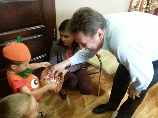 W dniu 31 października Z okazji Halloween dzieci ze starszej grupy żłobkowej w przebraniu wybrały się do Urzędu Miasta w celu przestraszenia pracowników, którzy wykupywali się cukierkami – w myśl „cukierek albo psikus”. To sprawiło dzieciom dużo radości, myślimy że nam to się udało , to widać na załączonych zdjęciach.