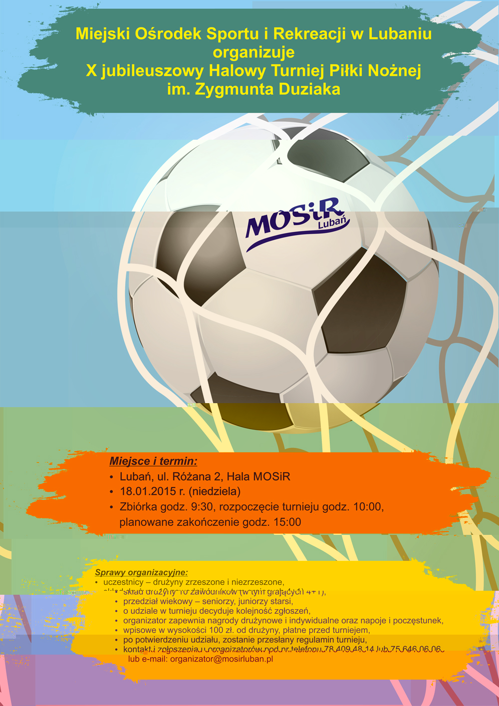 Zapraszamy 18 stycznia 2015r., rozpoczęcie godz.   10:00   na X jubileuszowy Halowy Turniej piłki Nożnej.