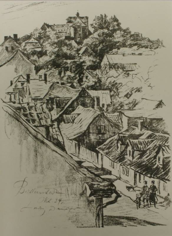 Grafiki przedstawiają widok niewielkiego niemieckiego miasta Ballensted, położonego w Sachsen-Anhalt, z października 1928 r. oraz górską chatę, uwiecznioną ręką malarza w Sylwestra 1911/1912 r.Tymczasem trzecia praca to portret Oskara Kirchhoffa, naszkicowany podczas świąt Bożego Narodzenia w 1916 r.