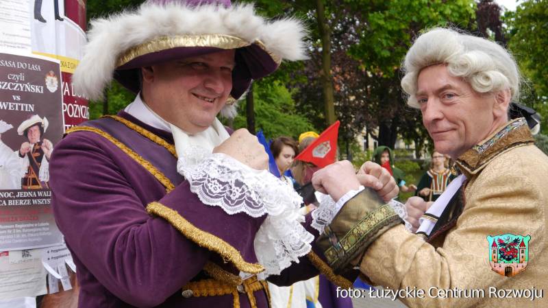 Organizatorzy spotkania w nawiązaniu do minionych wydarzeń przedstawili pojedynek obu monarchów – pojedynek niecodzienny, bo na masę w dosłownym tego słowa znaczeniu. Jak się okazało umiejętności bokserskie były nie potrzebne gdyż zamiast pięści o zwycięstwie decydowała waga ciała rywali. Władcą o cięższej ręce i nie tylko ręce okazał się Wettin – ówczesny margrabia Górnych Łużyc i to on ku radości lubanian został królem Polski. Całe widowisko komentował na bieżąco pomysłodawca wydarzenia i sędzia pojedynku, dyrektor Muzeum Regionalnego Łukasz Tekiela, któremu mistrzowsko udało się dokonać pozornie niewykonalnego zadania - połączyć dynamiczny i wartki styl komentatorów sportowych z przekazywaniem informacji o historii i ciekawostek.