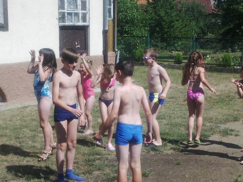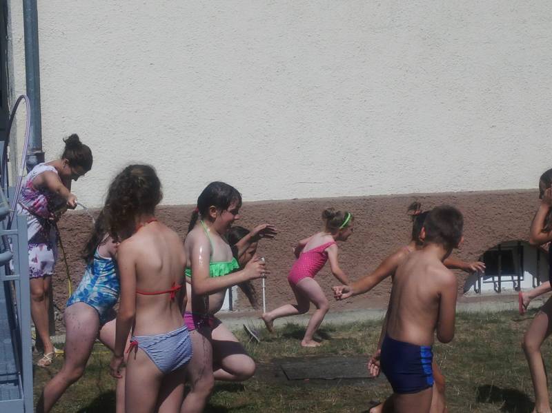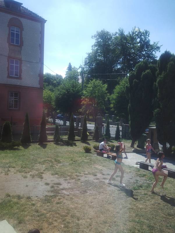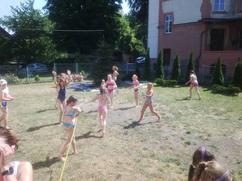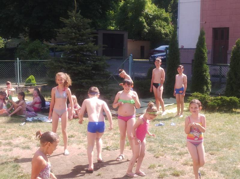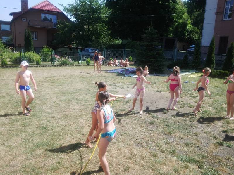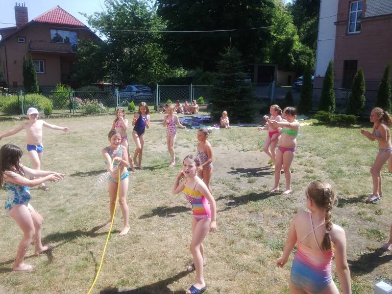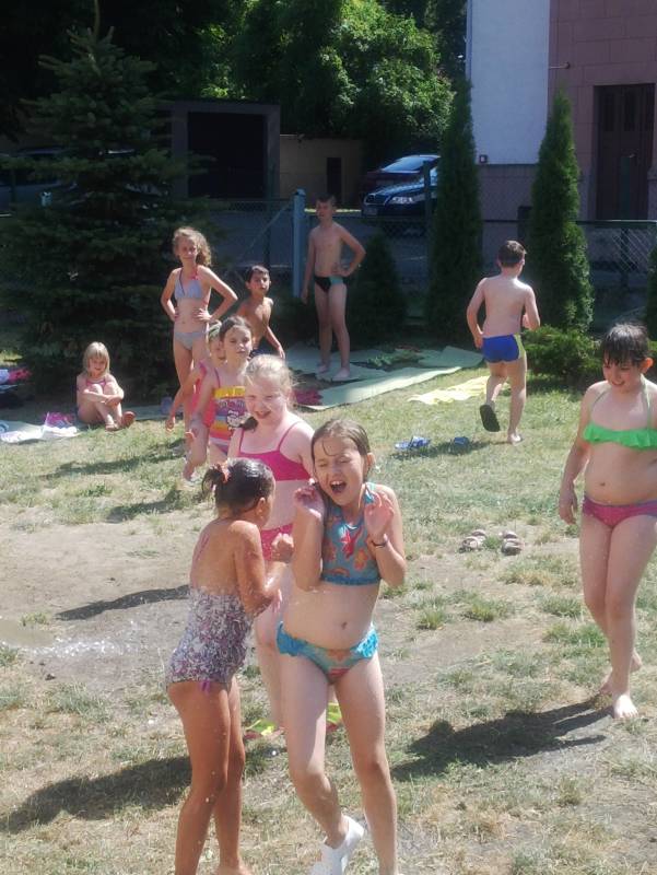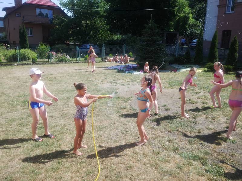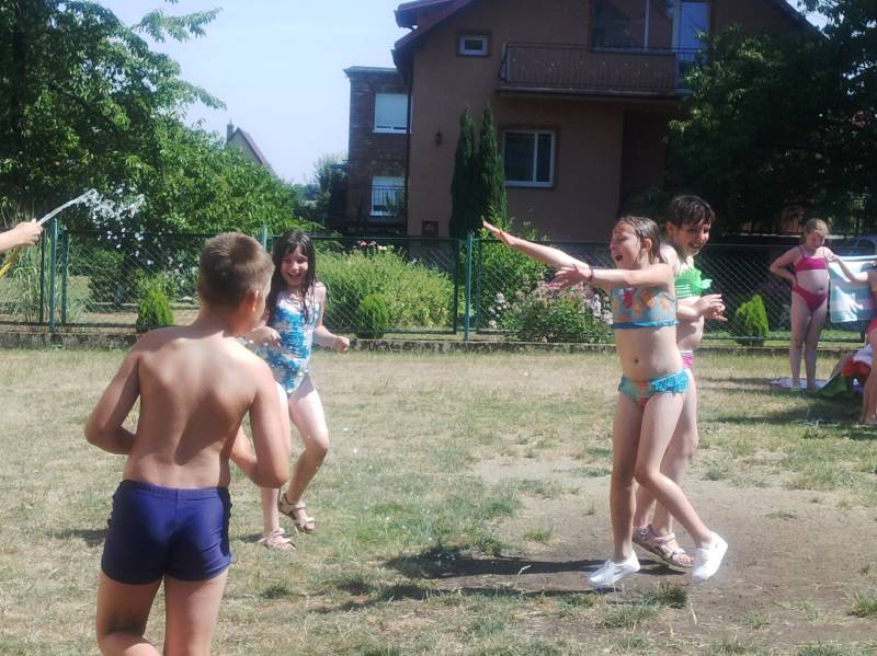 Tegoroczne wakacje z Ośrodkiem Wsparcia Dziennego upływają pod hasłem bezpieczne i radosne spędzanie czasu wolnego. W realizacji planu zajęć nie przeszkadza nawet fala upałów, przechodząca właśnie przez Lubań. Jak widać na załączonych zdjęciach dzisiejsza zabawa z wodą okazała się dla dzieci najciekawszą propozycją na spędzenie ciekawego i aktywnego wypoczynku. Spontaniczna zabawa przyniosła wiele radości o czym świadczą dziecięce uśmiechy.