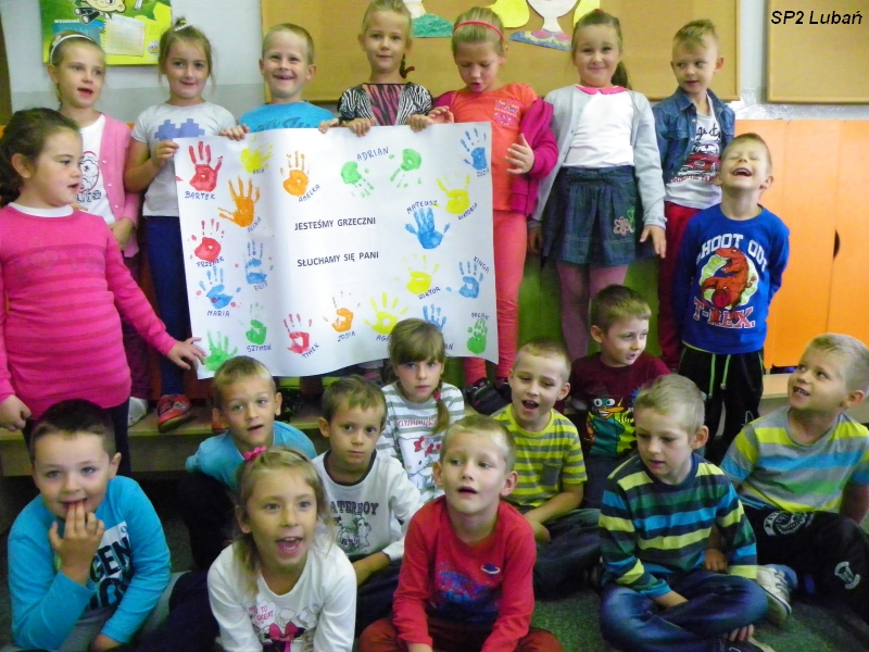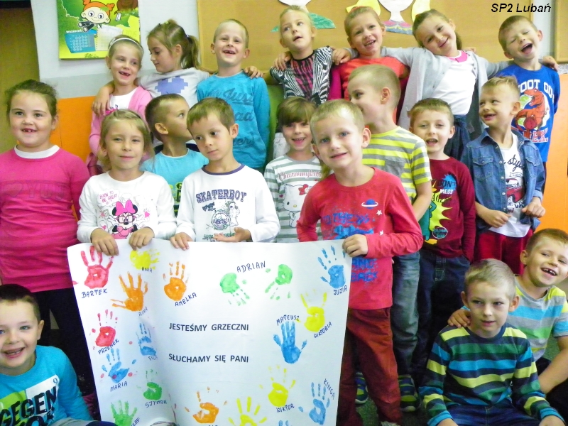 Minęło już kilka tygodni, a my sześcioletnie pierwszaki, poznaliśmy wiele ciekawych rzeczy związanych z nauką i naszą szkołą. Zadomowiliśmy się w naszej klasie, a nawet mamy swój kodeks zachowania. Bardzo dziękujemy mamom, które pomogły nam go wykonać.