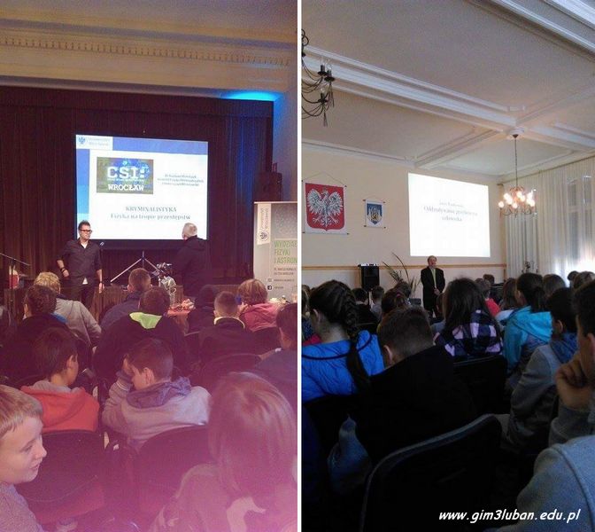 widowiskowej Miejskiego Domu Kultury - „Jak zobaczyć ślady? Fizyczne podstawy kryminalistyki”, a nieco później, w auli