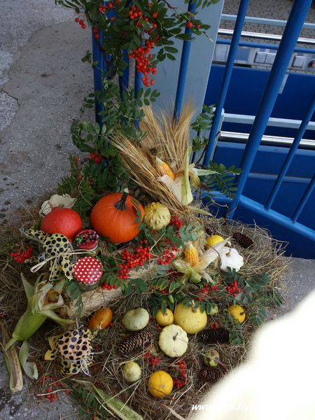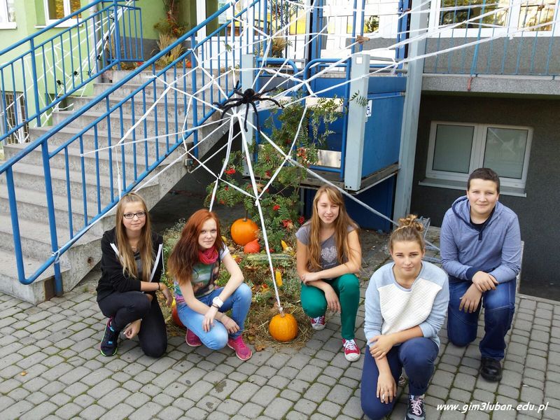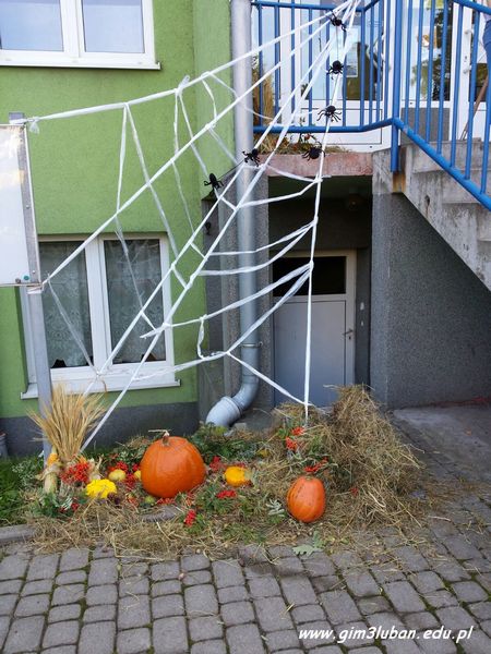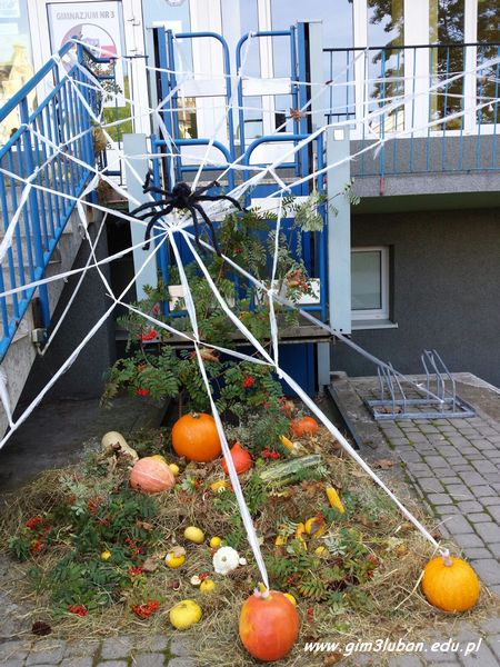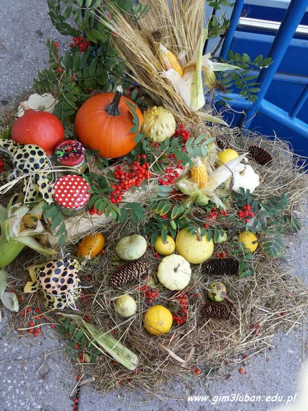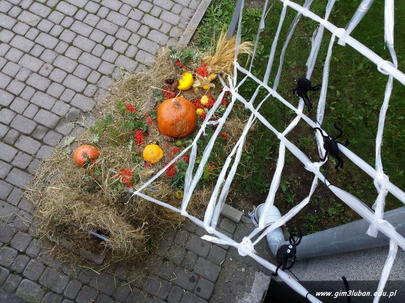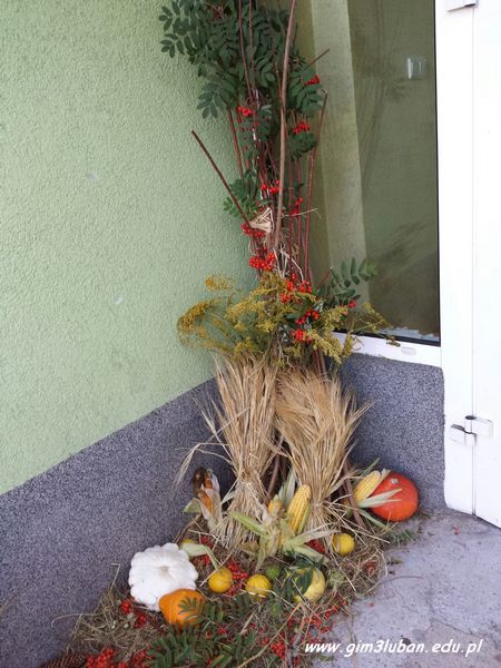 Uczniowie przygotowali z kasztanów, dyni, słomy oraz wielu innych darów natury ciekawą dekorację, która każdego dnia witała nie tylko stałych bywalców szkoły, ale również lubańskich przechodniów.