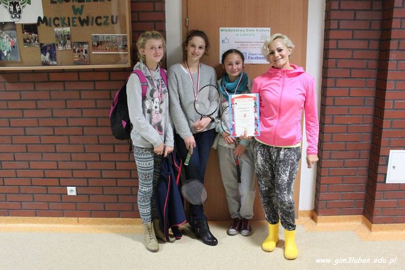 21 października w hali sportowej Zespołu Szkół Ponadgimnazjalnych im. A. Mickiewicza w Lubaniu odbył się finał powiatowy w badmintonie dziewcząt. Uczennice z Gimnazjum nr 3 zaprezentowały swoje umiejętności na bardzo wysokim poziomie nie tylko w grze grupowej, ale także deblowej.