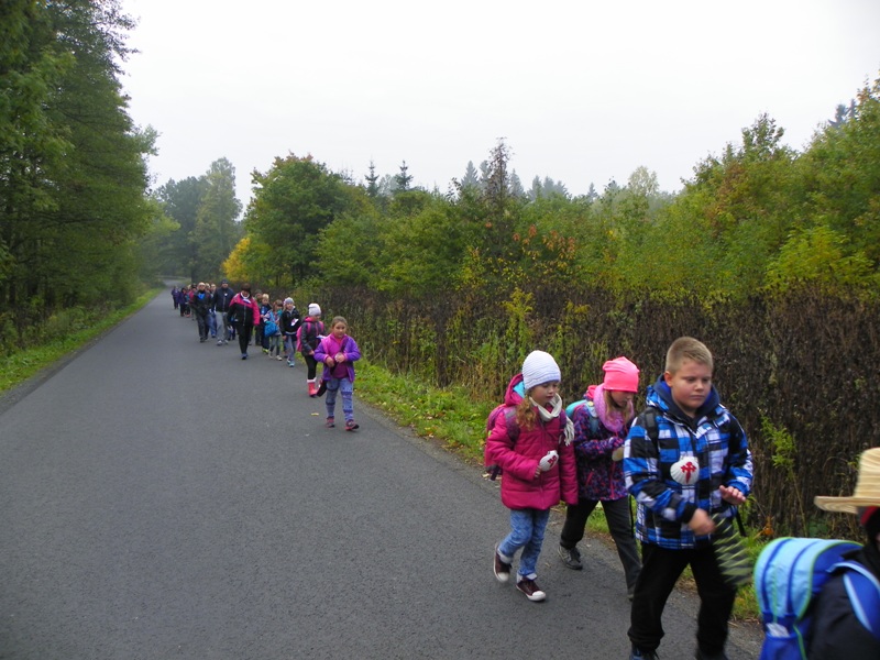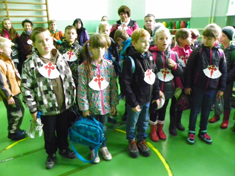 Następnie autokar zawiózł nas do   Olszyny, a stamtąd pieszo Dolnośląską Drogą św. Jakuba wróciliśmy do szkoły. Droga wiodła przez piękny jesienny las, było co podziwiać.   Pogoda dopisała, humory również, a całą imprezę można uznać za bardzo udaną. W szkole czekała   ciepła herbata i pizza zakupiona przez Radę Rodziców. Bawiliśmy się świetnie, w przyszłym roku   znowu wyruszymy na Jakubowy Szlak. Klasy pierwsze poznawały Jakubowe Drogi i nasze tradycje związane z imieniem, w szkole. W przyszły roku wyruszą z nami na trasę. Z okazji III rocznicy przygotowaliśmy również wystawę pt. „ My na Jakubowych Drogach”, którą można oglądać w Miejskiej i Powiatowej Bibliotece Publicznej w Lubaniu. E.G.