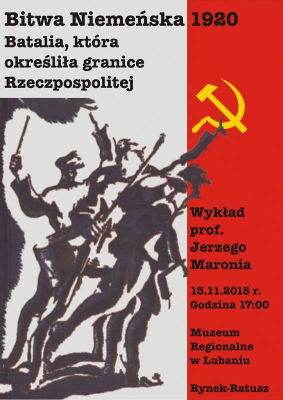 Muzeum Regionalne w Lubaniu zaprasza na wykład prof. Jerzego Maronia, poświęcony bitwie niemeńskiej w 1920 r. Wykład odbędzie 13 listopada 2015 r. o godz.17:00 w sali ekspozycyjnej lubańskiego muzeum. Serdecznie zapraszamy.