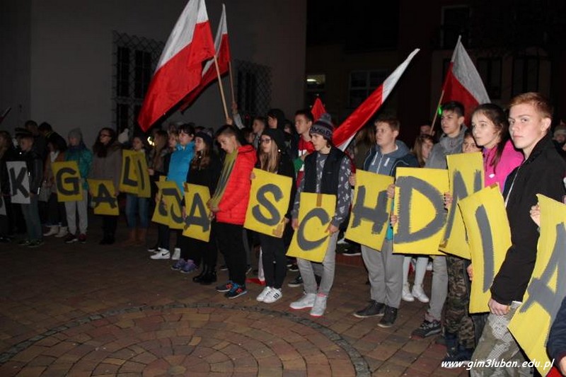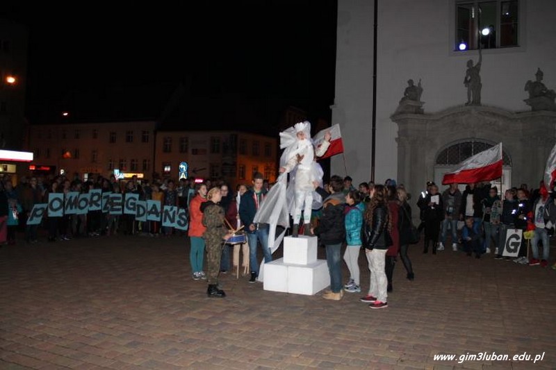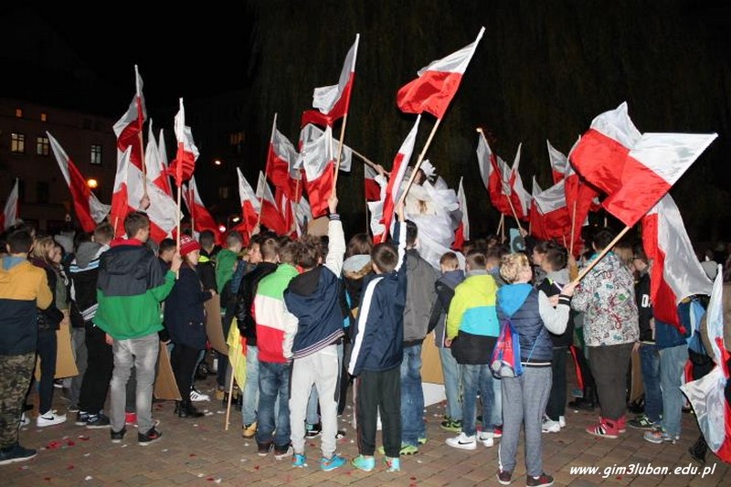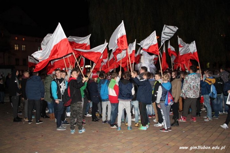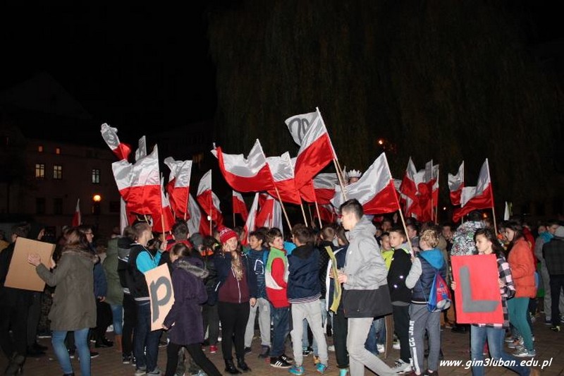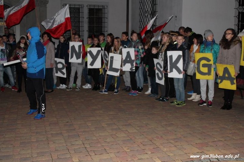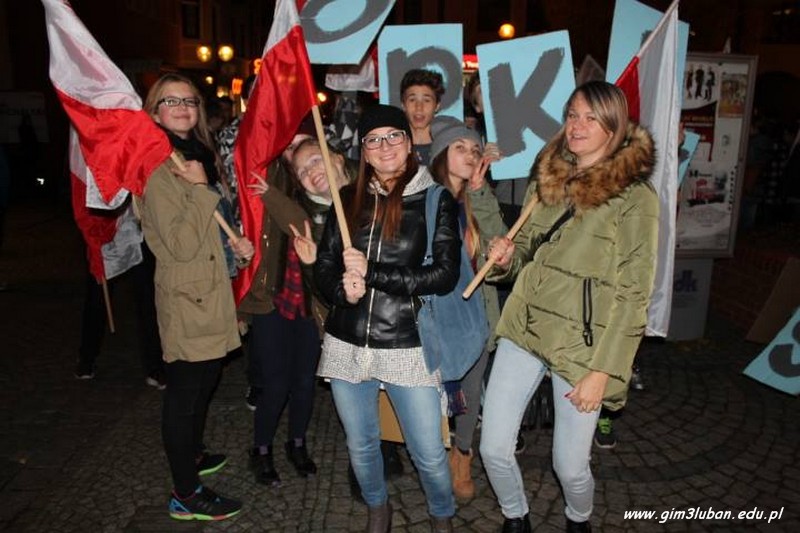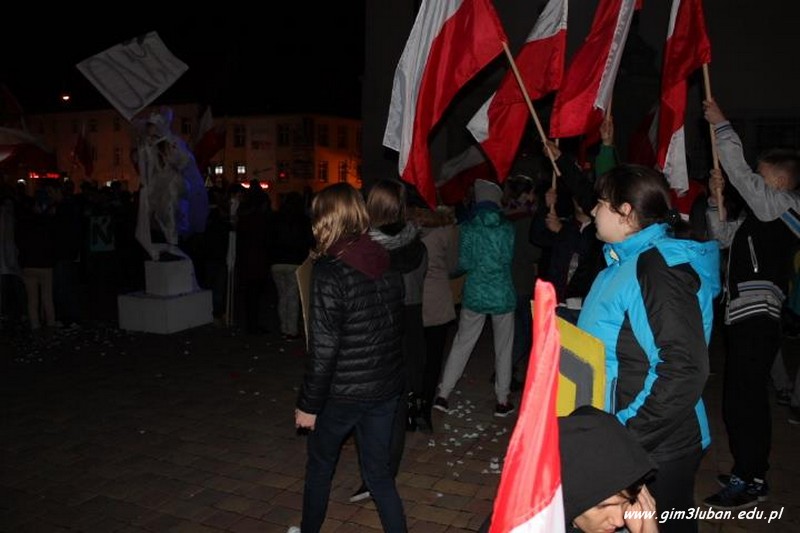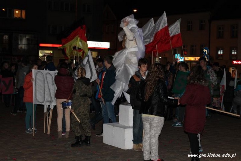 „To twój Dzień Niepodległości – przeżyj go z nami!” – tak brzmiało hasło wywoławcze tegorocznego happeningu przygotowanego przez Gimnazjum nr 3. Lubaniakom – Polakom, z którymi mogliśmy dzielić te radosne chwile – DZIĘKUJEMY.