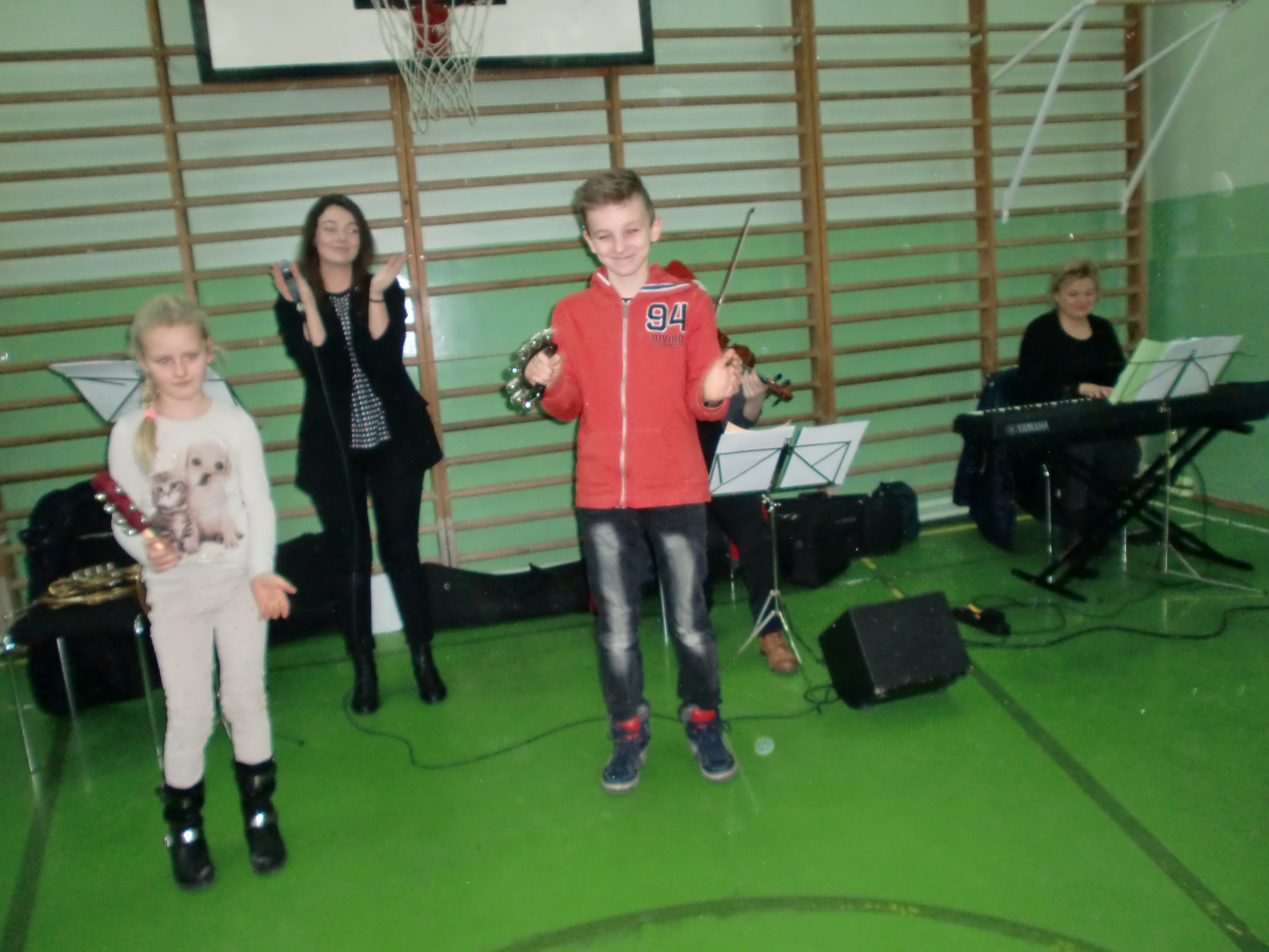 Na kolejnym spotkaniu z muzykami z Dolnośląskiej Filharmonii Muzycznej w Jeleniej Górze (10.12 ), poznaliśmy dźwięki i muzykę, która towarzyszy zimowej aurze. Wprawdzie jeszcze śniegu nie ma, ale my już wyruszyliśmy w zimowy kulig. W końskim zaprzęgu dominują janczary czyli niewielkie dzwoneczki, a ich sposób użycia polega na przywiązaniu, ich do uprzęży końskiej, skutkiem czego zaprzęg biegnąc wywołuje charakterystyczny dźwięk w rytm końskich kroków. Ochotnicy próbowali swoich umiejętności na ,,sztucznym lodowisku”, a w utrzymaniu równowagi pomagały dźwięki spokojnej muzyki. Kolejny raz mieliśmy okazję uczestniczyć w zajęciach edukacji muzycznej ,,na żywo”, a następne spotkanie już w styczniu.