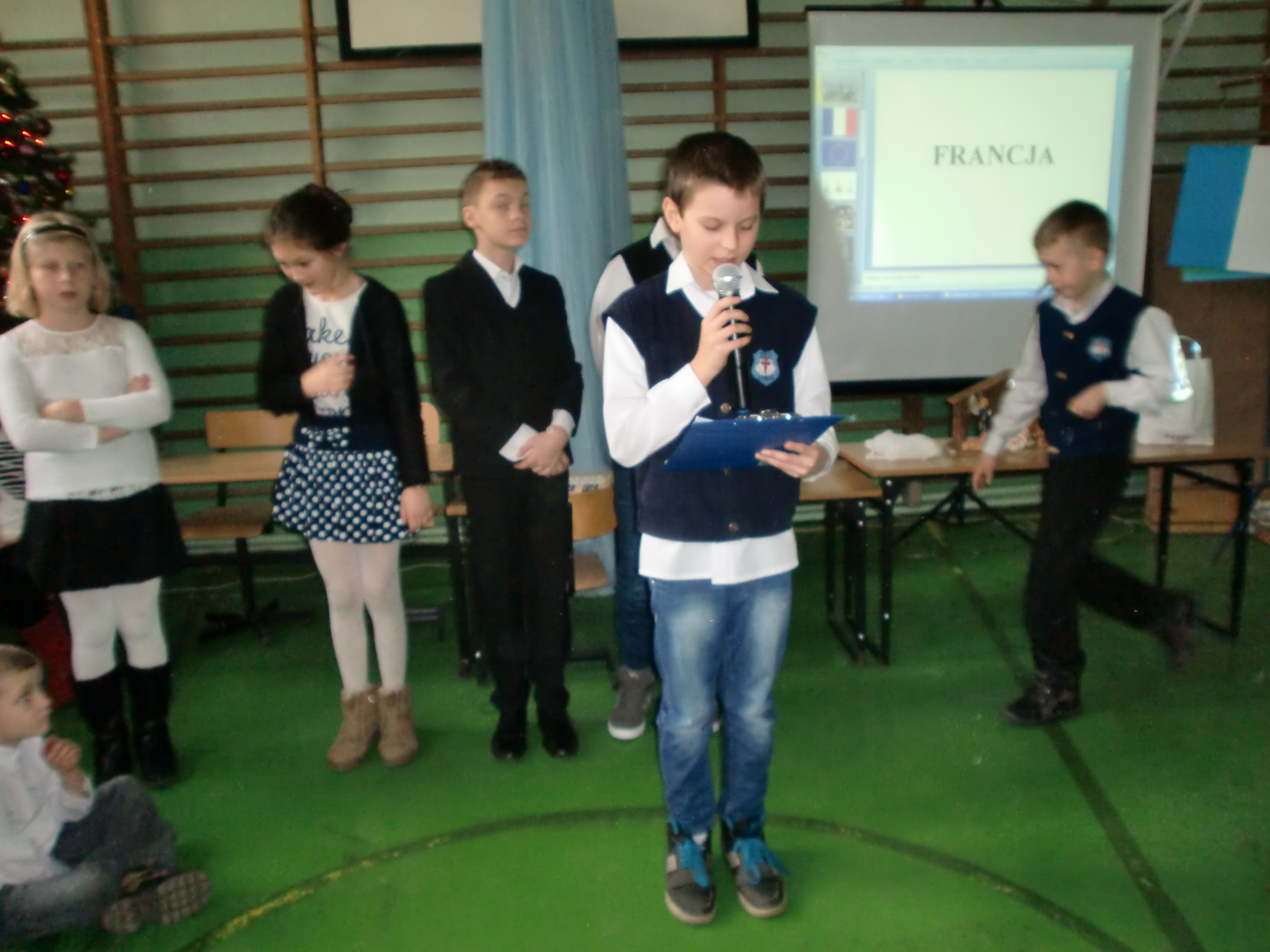 Wcześniejsze losowanie państw, których prezentacja miała miejsce w ostatnim dniu przed świąteczną przerwą ( 22.12.15 ), zmobilizowała wszystkie klasy do uważnego przeanalizowania i zapoznania się z kulturą danego państwa. Każda klasa barwnie, ciekawie i bogato dokonała przeglądu bożonarodzeniowych zwyczajów, a były to następujące kraje: