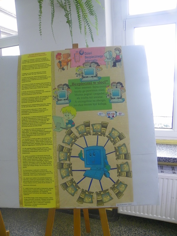 Przed przystąpieniem do obchodów Dnia Bezpiecznego Internetu przeprowadzono w kl. IV – VI ankietę, której celem było zdiagnozowanie jaki wpływ ma komputer i Internet na życie i funkcjonowanie dzieci oraz czy przestrzegane są przez nie zasady bezpieczeństwa w Sieci. Dane uzyskane podczas badania stały się podstawą do dalszych działań. W ramach obchodów przygotowano tablice informacyjne o bezpiecznym Internecie : „ Nigdy nie wiesz, kto wykorzysta informacje o tobie”, „ Nigdy nie wiesz, kto jest po drugiej stronie” oraz o zasadach dobrego zachowania się w sieci - „Netykieta”. Przeprowadzono pedagogizację rodziców kl. I nt. „Wpływu Internetu na różne aspekty rozwoju dziecka”. Przygotowano ulotkę zawierającą informacje o symptomach uzależnienia od komputera oraz co należy robić, aby uchronić dziecko przed uzależnieniem.Uczniowie klas IV – VI uczestniczyli w spotkaniu z przedstawicielami Komendy Powiatowej Policji w Lubaniu. Prelekcja dotyczyła zasad bezpieczeństwa w Internecie, cyberprzemocy - przemocy rówieśniczej ( oczernianie, groźby, nękanie) z użyciem Internetu i telefonów komórkowych oraz konsekwencji prawnych tych czynów. Uczniowie klas I – III wzięli udział w zajęciach edukacyjnych na temat zagrożeń związanych z korzystaniem przez dzieci z Internetu i telefonów komórkowych min. : jakich danych o sobie nie podajemy przez Internet, jakie są konsekwencje zamieszczania fotografii w Sieci. Podczas spotkania uczniowie obejrzeli kreskówki „Owce w Sieci”. Ich akcja rozgrywa się w górach, na hali, gdzie obserwujemy perypetie mądrego bacy, naiwnego Jaśka, niewinnych owiec , złych wilków oraz dzielnego gajowego . Każda bajka zawiera morał , mówiący jak uniknąć zagrożeń w wirtualnym świecie.