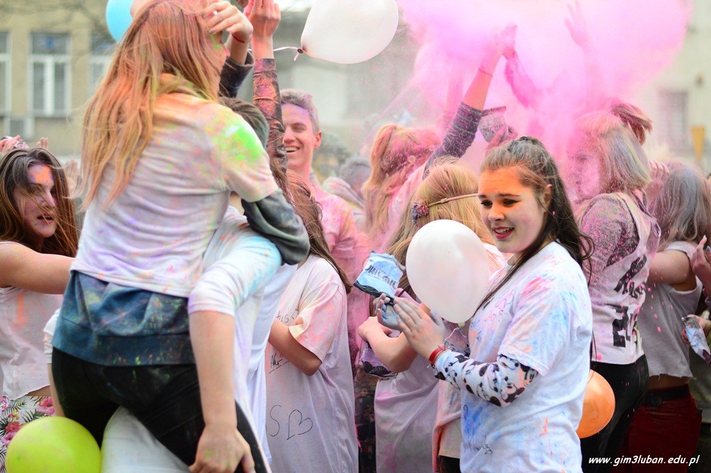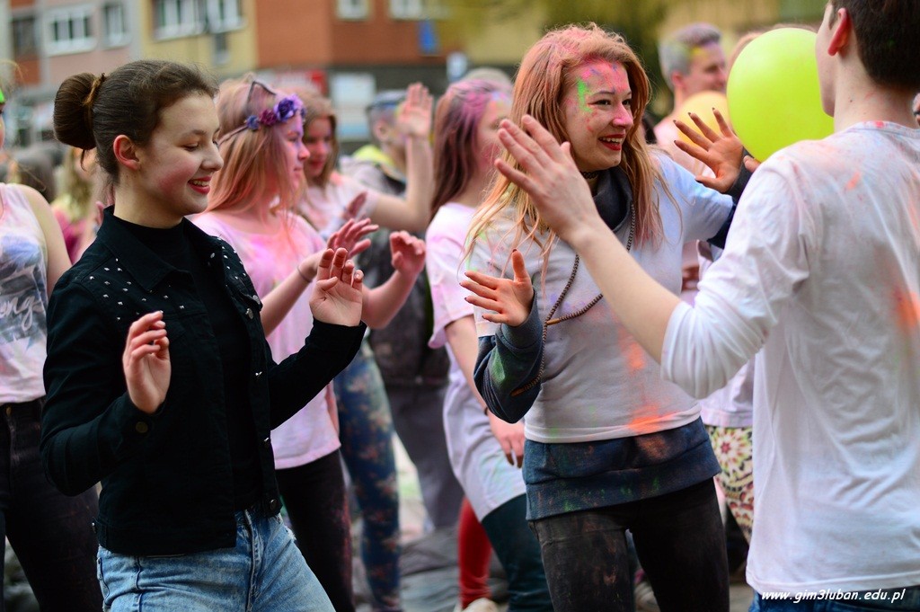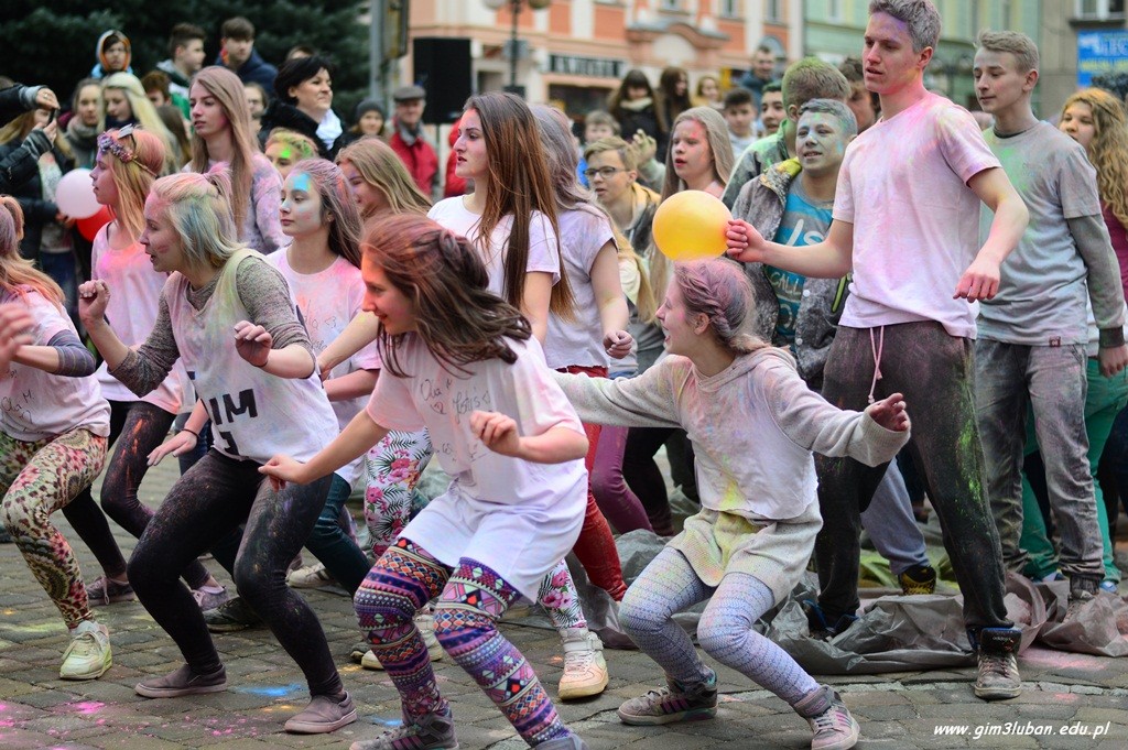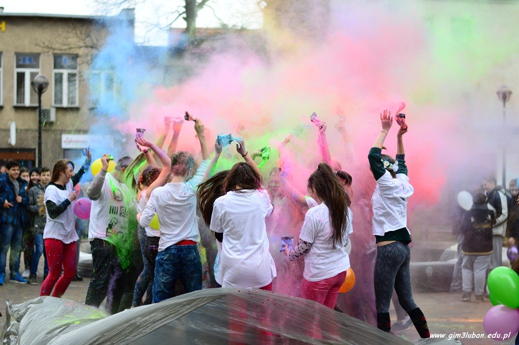 Uczestnicy odgrywają wówczas pościg polegający na wzajemnym obrzucaniu się i wylewaniu na siebie kolorowych farb z wodą, podobnie jak podczas polskiego śmigusa-dyngusa. Wszyscy chcą podzielić się radością, a także wybaczają sobie błędy z przeszłości. Przed południem Gimnazjaliści z lubańskiej Trójki podobnie rozgrzali przechodniów energetycznym tańcem, a paleta barw unosząca się w powietrzu jeszcze bardziej skłoniła do poszukiwań pierwszych znaków wiosny.