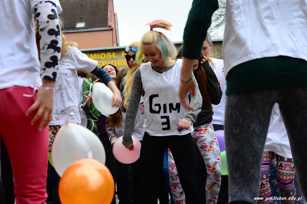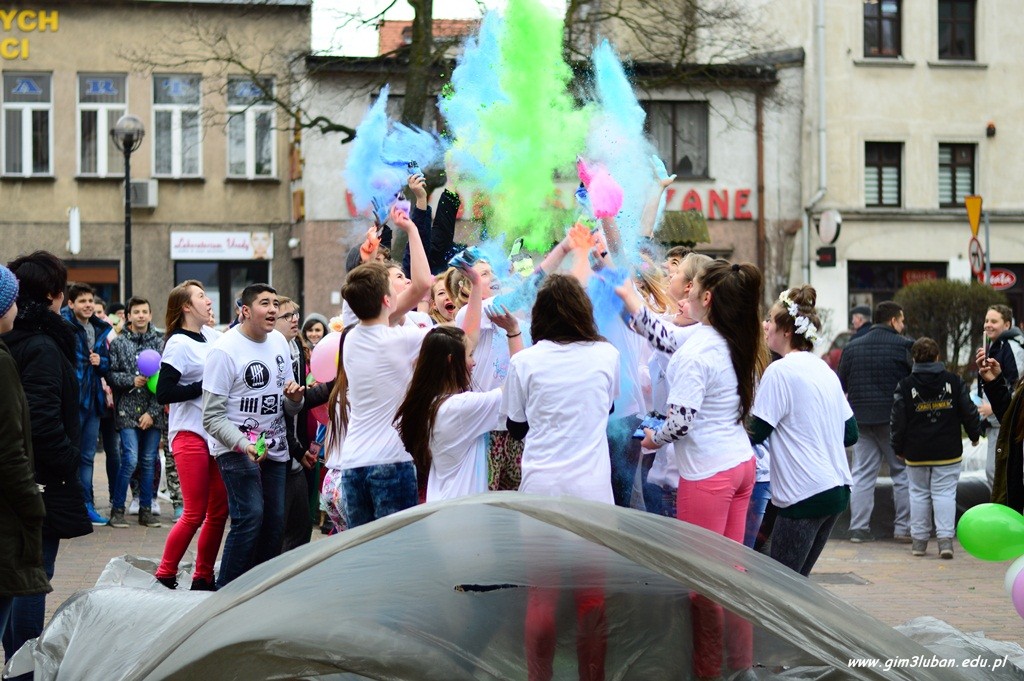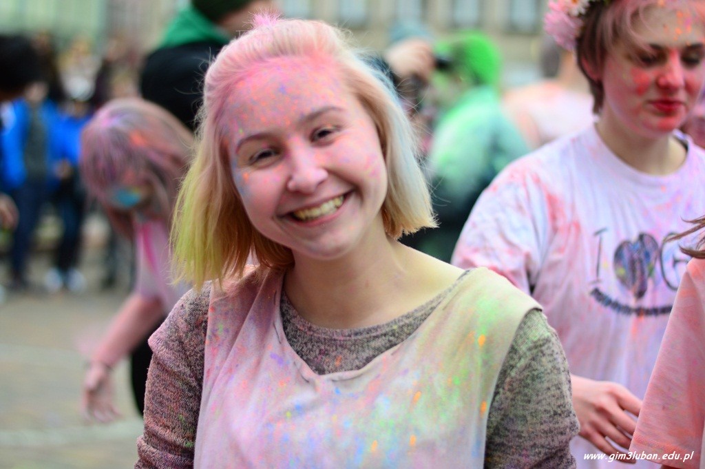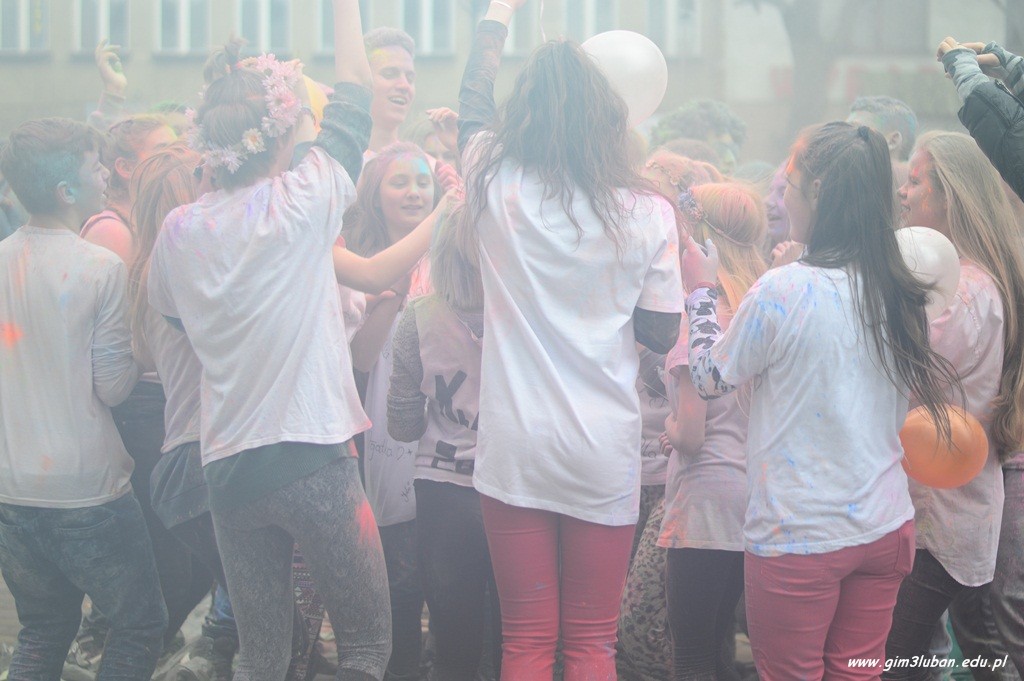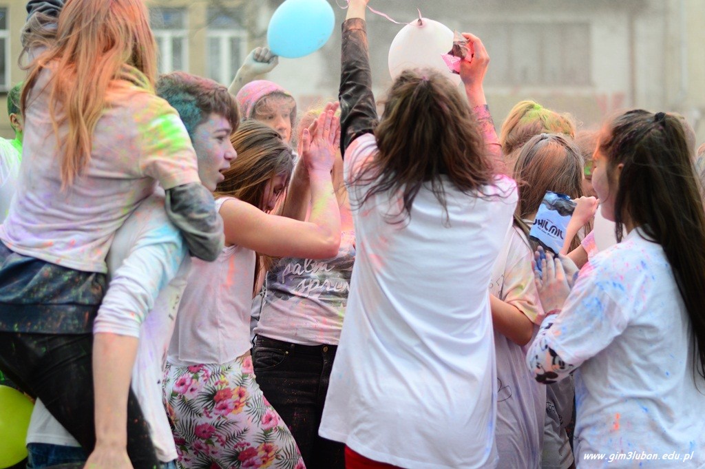 Uczestnicy odgrywają wówczas pościg polegający na wzajemnym obrzucaniu się i wylewaniu na siebie kolorowych farb z wodą, podobnie jak podczas polskiego śmigusa-dyngusa. Wszyscy chcą podzielić się radością, a także wybaczają sobie błędy z przeszłości. Przed południem Gimnazjaliści z lubańskiej Trójki podobnie rozgrzali przechodniów energetycznym tańcem, a paleta barw unosząca się w powietrzu jeszcze bardziej skłoniła do poszukiwań pierwszych znaków wiosny.